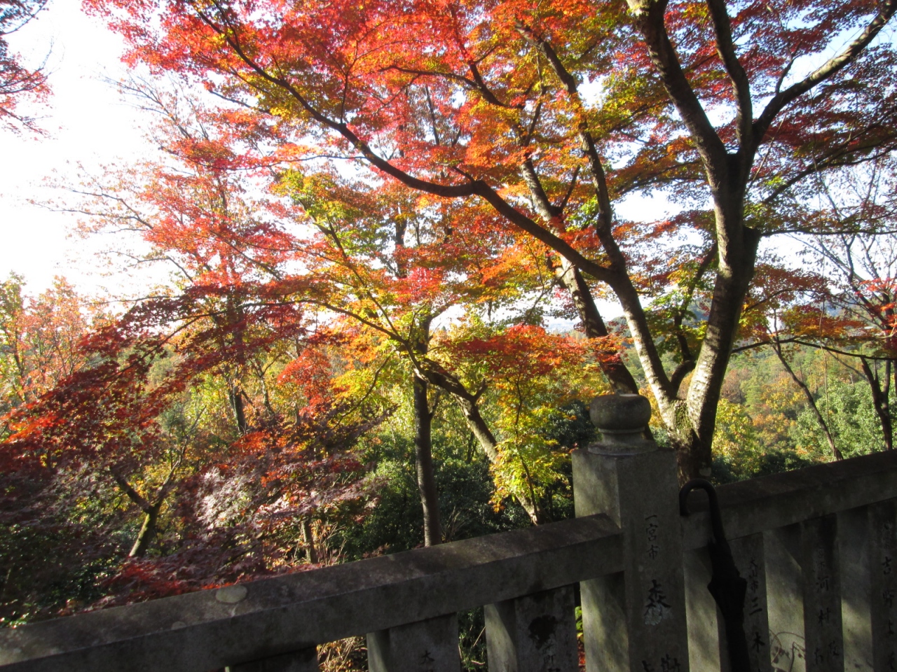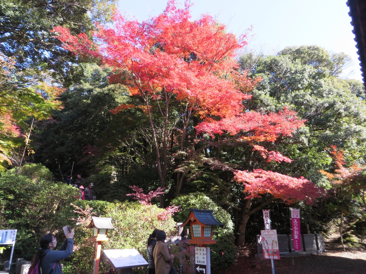 参道を高く覆うように紅葉が枝を伸ばしていて