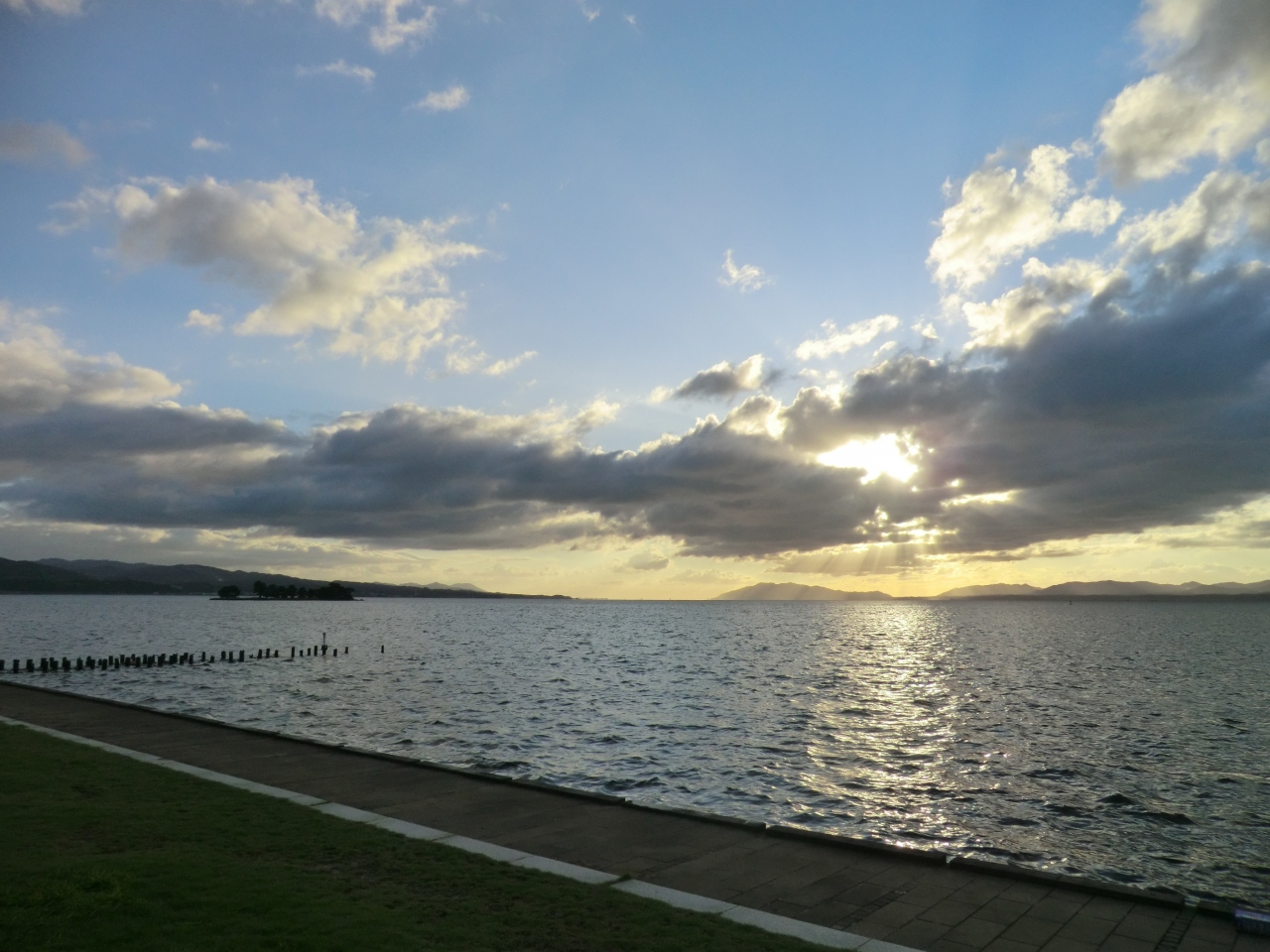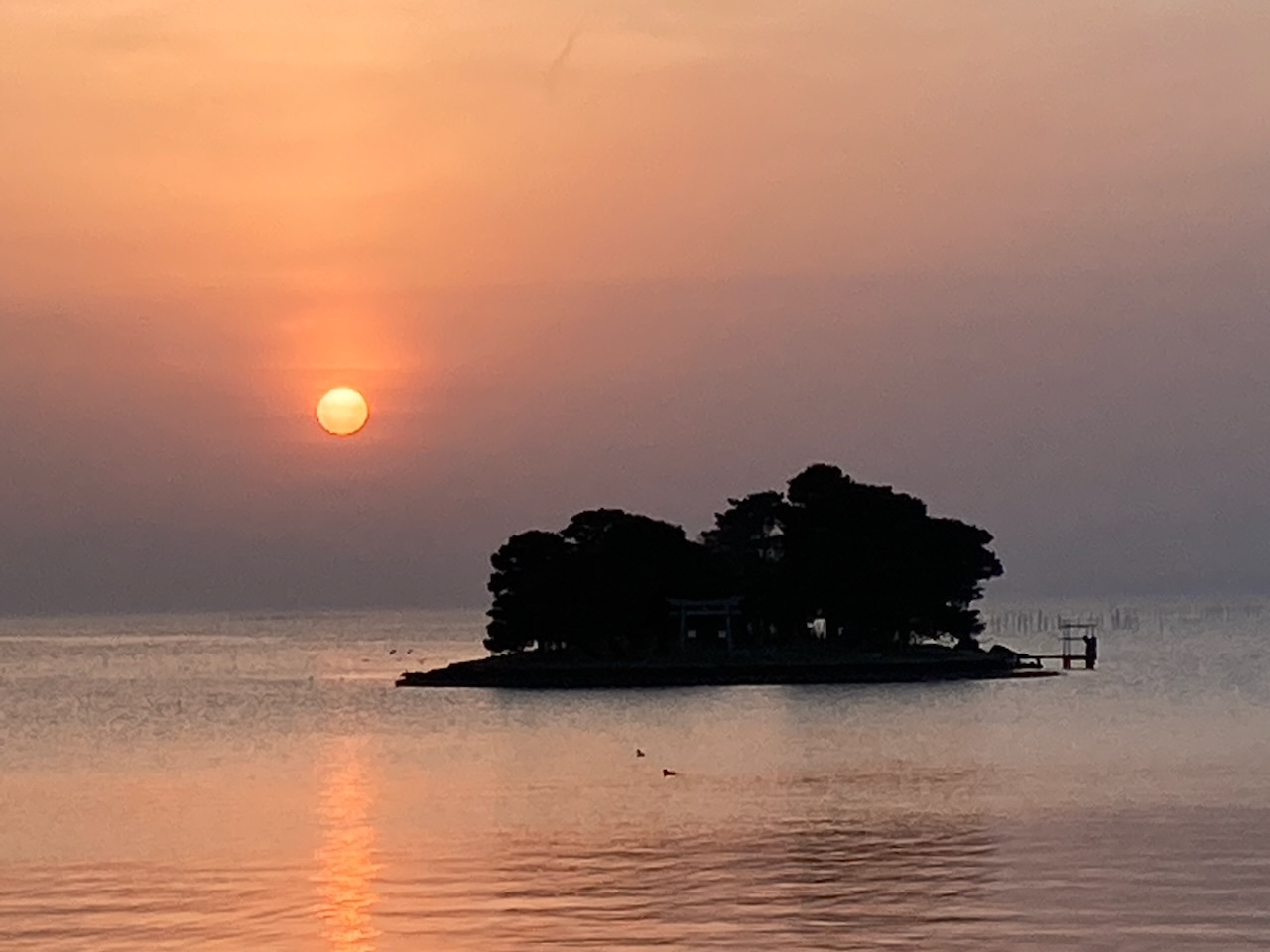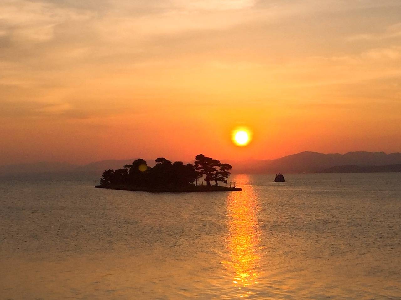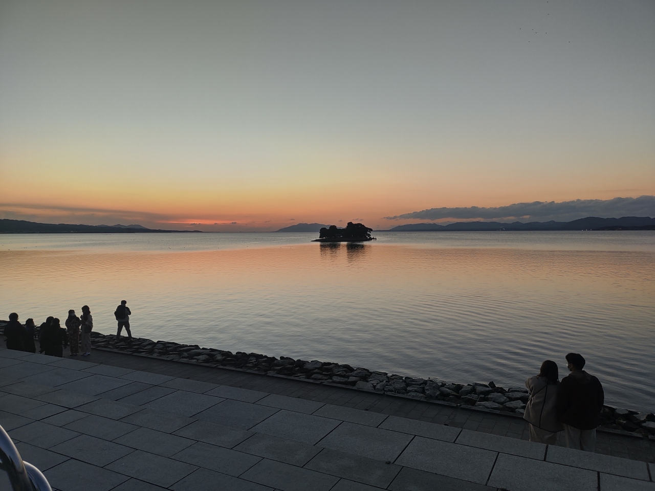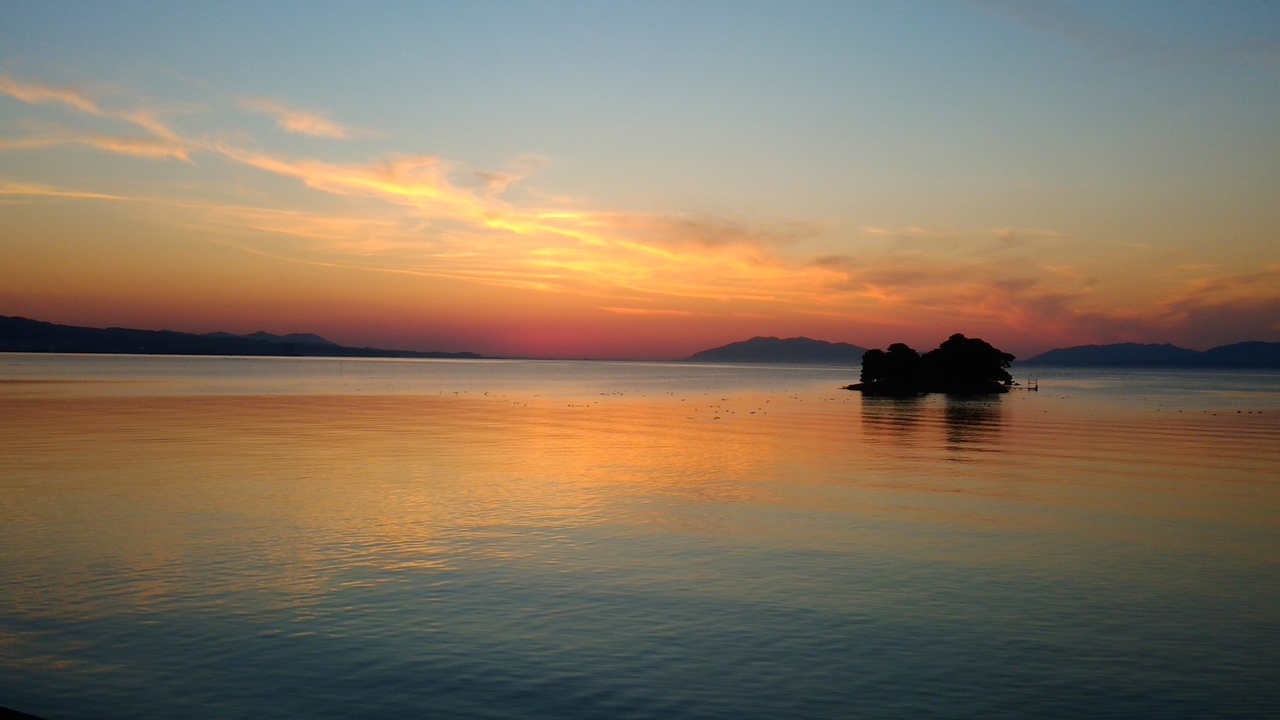 最近では、その日の夕日鑑賞確立が事前に確認できるサイトなども増えたので、わかりやすくなりました。 私が訪れた日は夕日鑑賞率100%なだけあり、本当に完璧なサンセットでした! 湖に浮かぶ嫁ヶ島も入れて撮影するとなかなか素敵です。