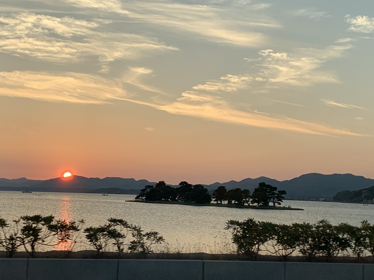 島根県立美術館に車を停め、素晴らしい夕日を楽しみました!
