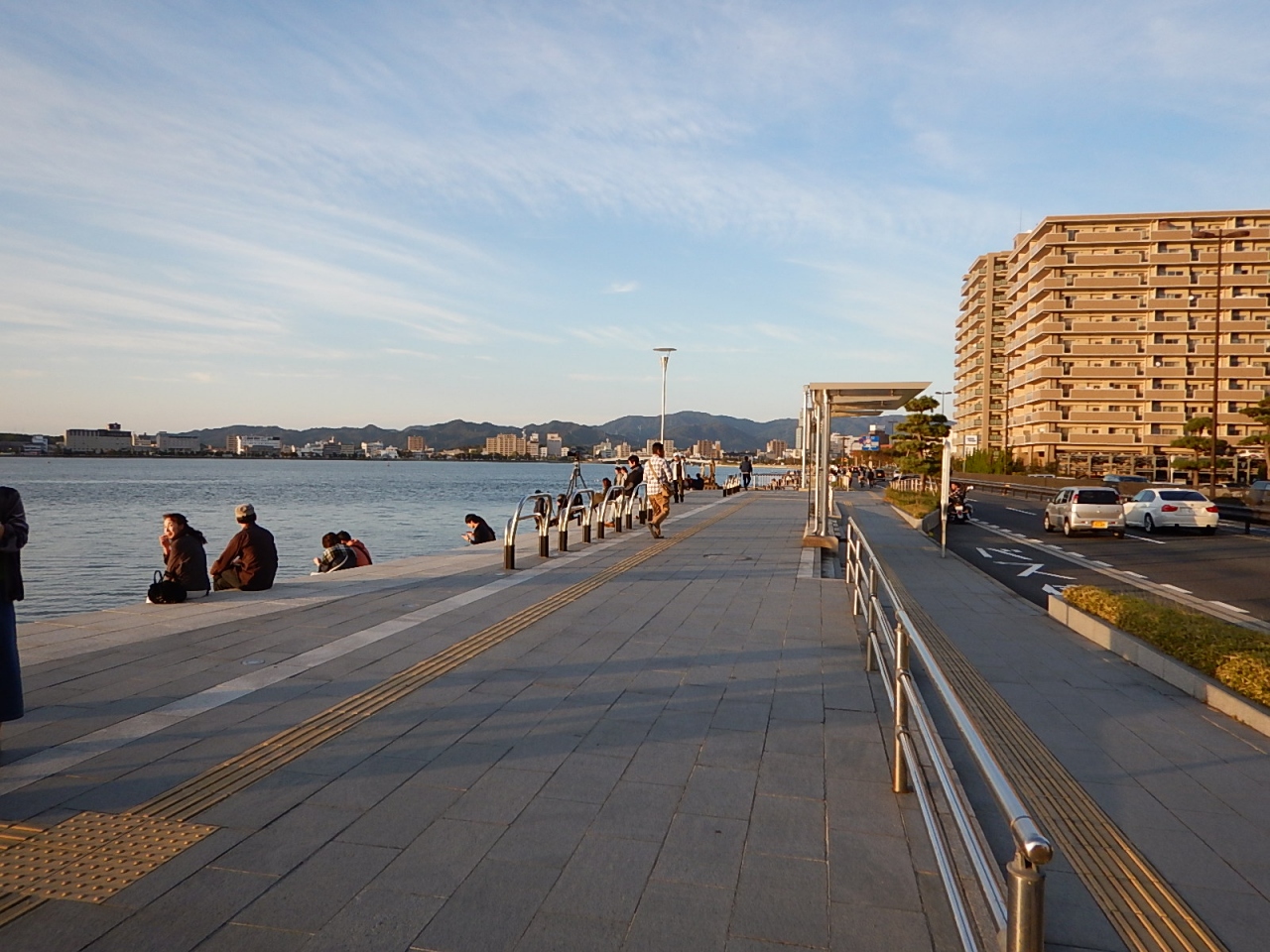 宍道湖夕日スポットは、宍道湖に沈む夕日が、嫁ヶ島とともに見える絶景ポイントに、湖沿いを歩ける歩道や、腰掛けて夕日を楽しむことが出来るテラスなどが整備された場所です。