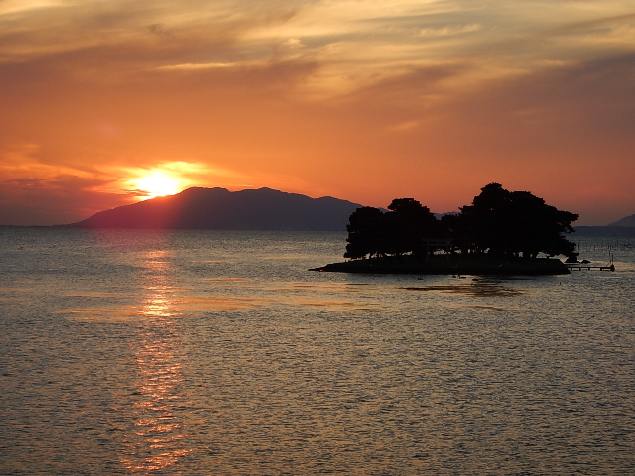 宍道湖の夕日を嫁ヶ島や袖師地蔵とともに眺めることのできる絶景のポイント