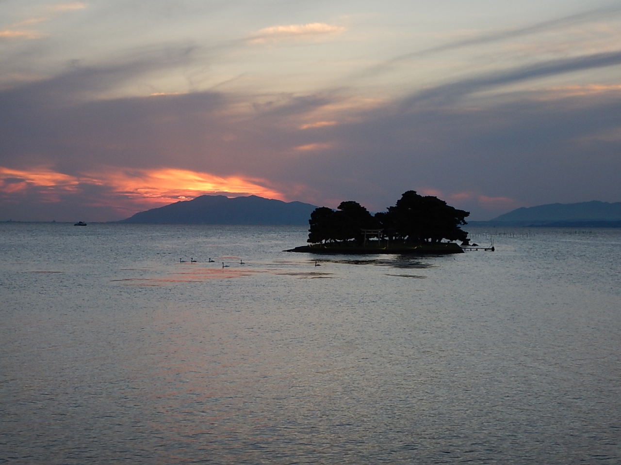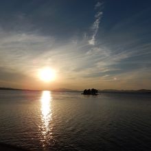 松... 続きを読む江城から皆生温泉へ向かう途中で、空が茜色に変わる頃から始まる湖上の「夕日ショー」が見学できました。