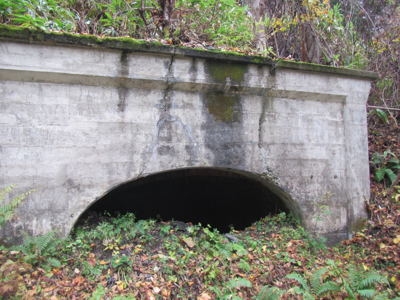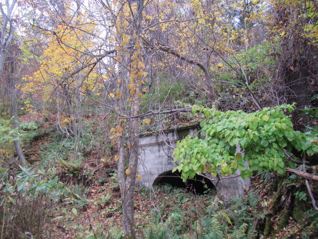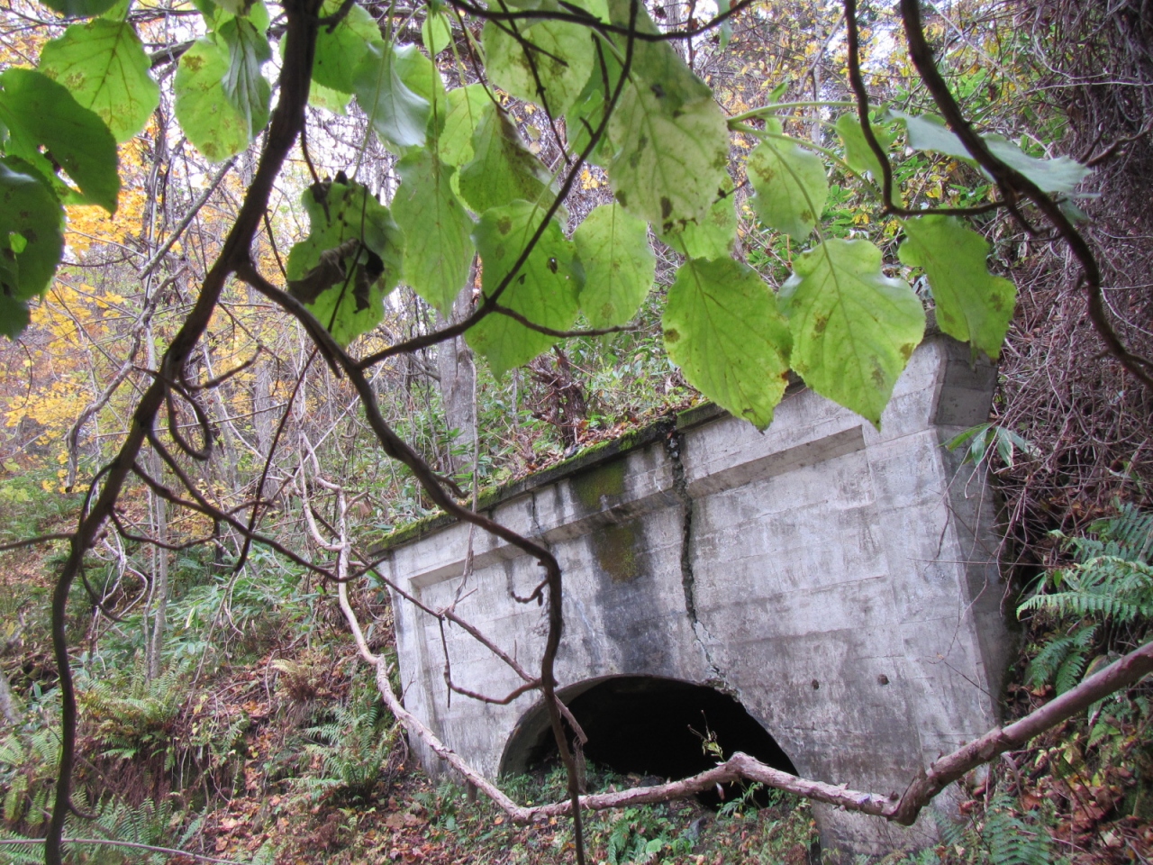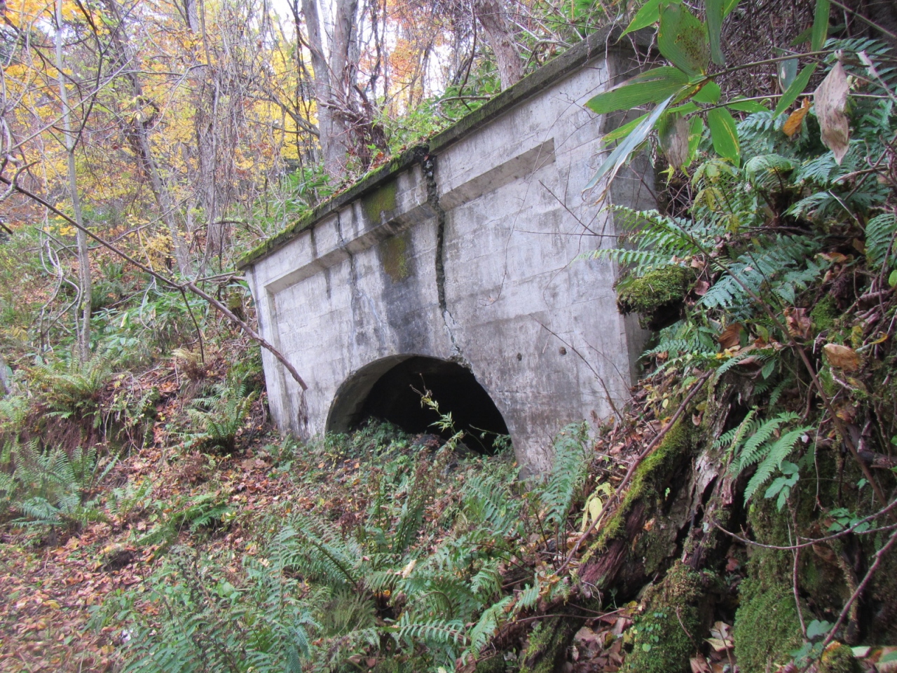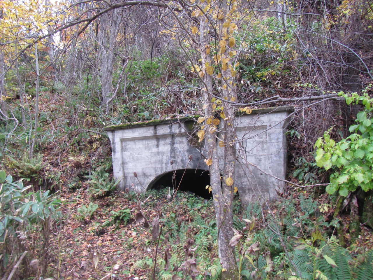 この坑口からも、時には石炭ばかりでなく死傷者も運び出され、数々のドラマを見てきたかと思うと、坑口を眺めていて感慨深いものがありますが、命をかけて炭鉱夫たちが精いっぱい働いた現場も、今では叢に埋もれて訪れる人はおろか、気づく人もいない状況に物寂しさを感じます。
