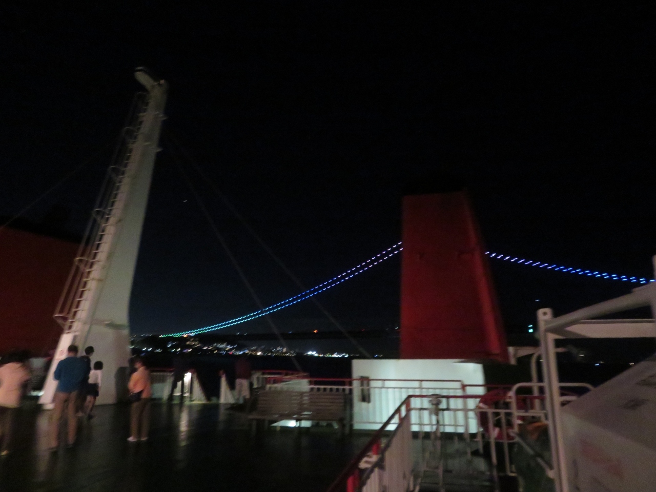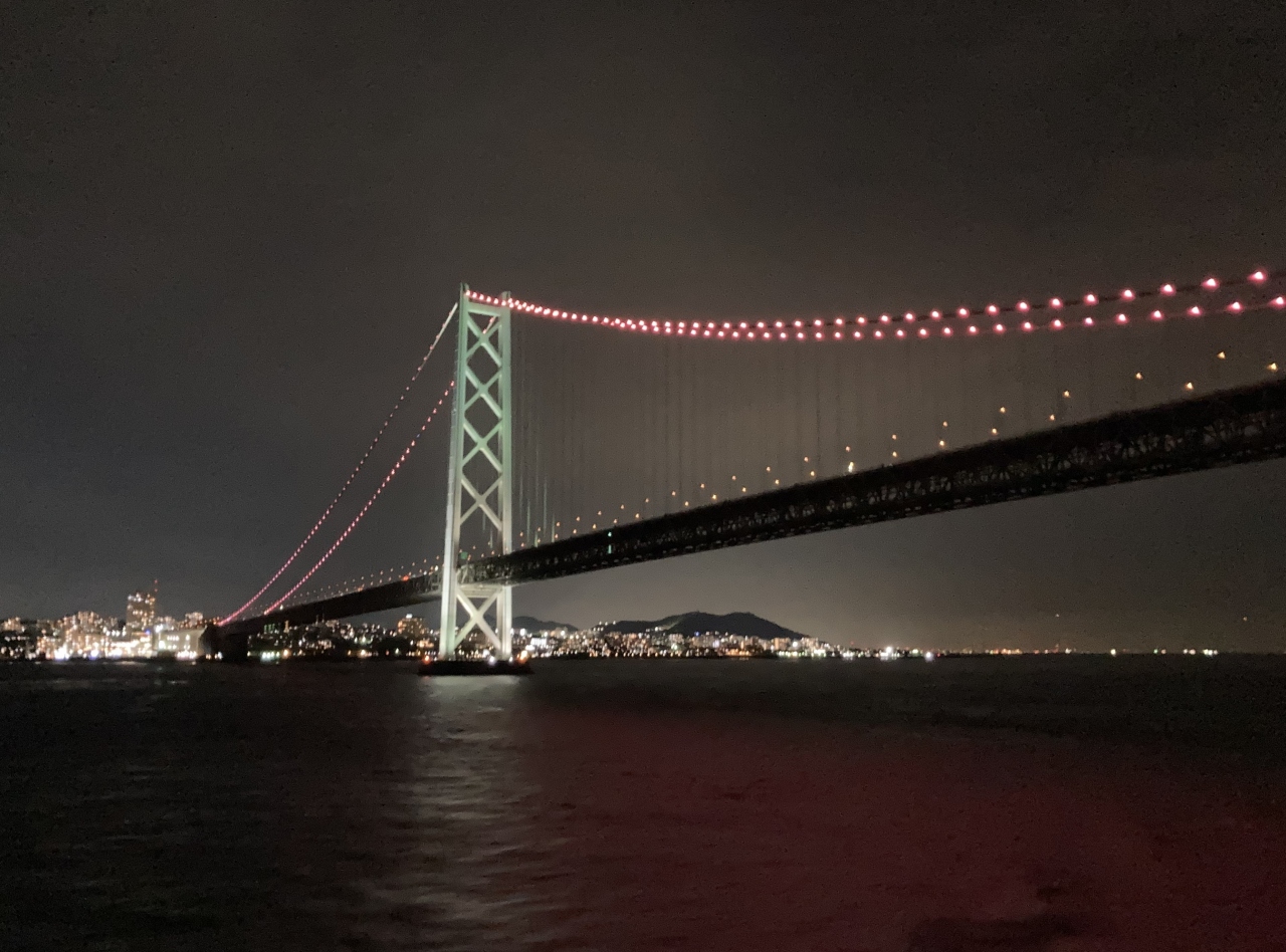 船内デッキから見た明石海峡大橋