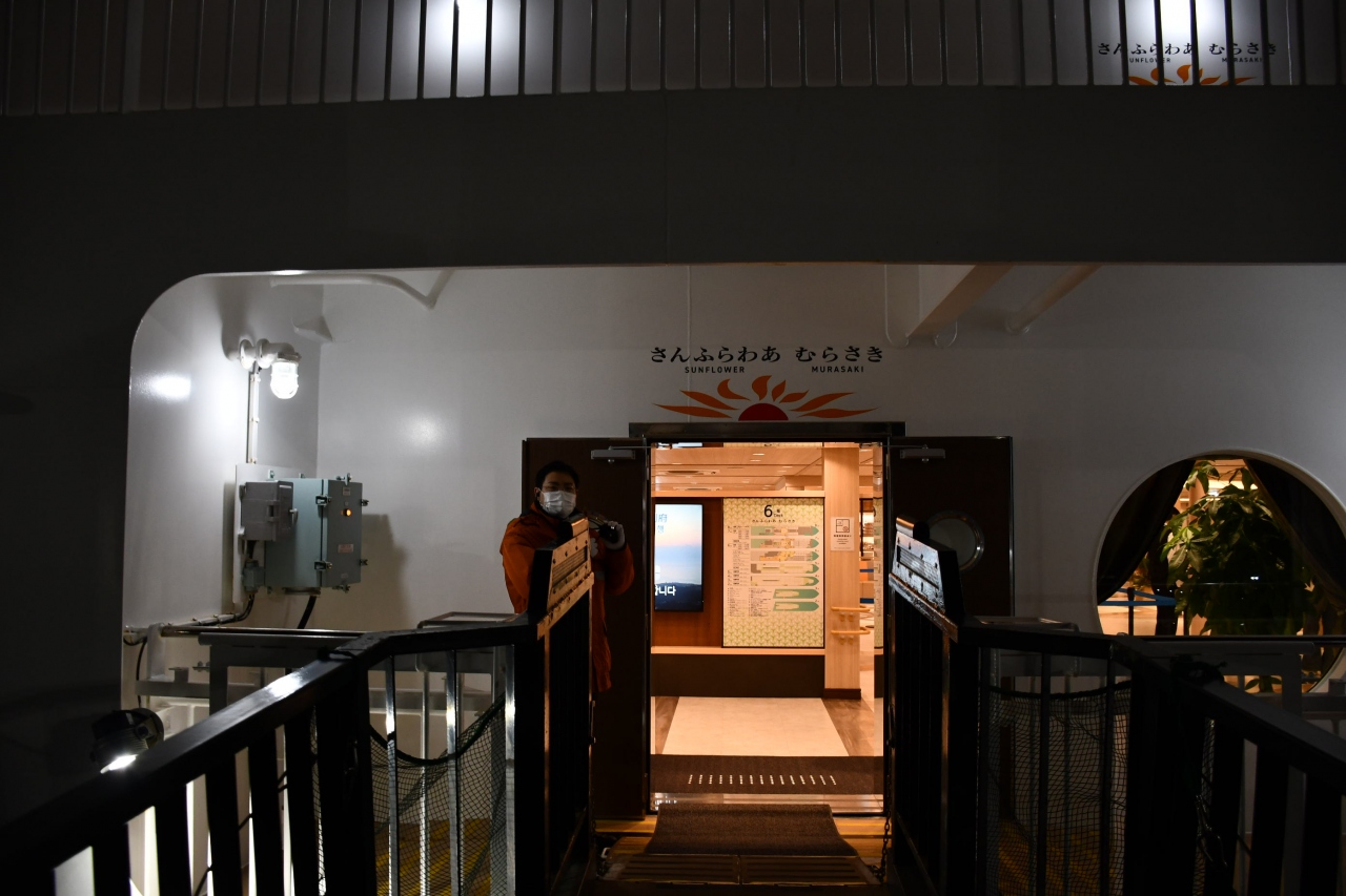 大阪南港で出航を待つ「さんふらわあ むらさき」