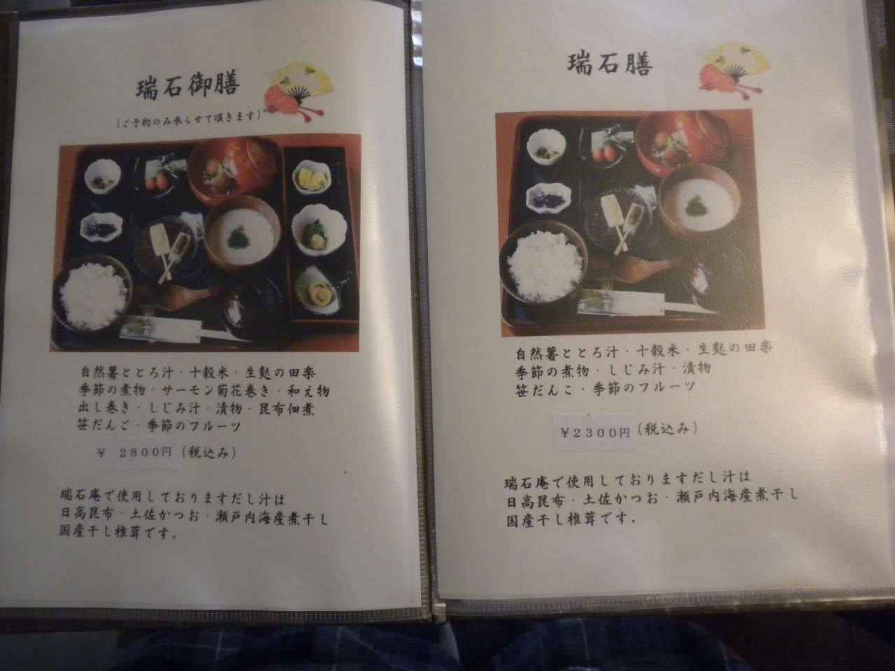 瑞石膳と瑞石御膳の差は500円の差で品数が4つ増えます。