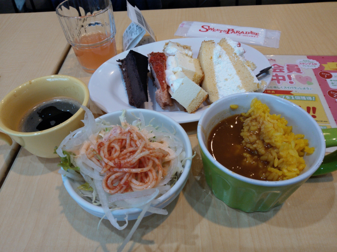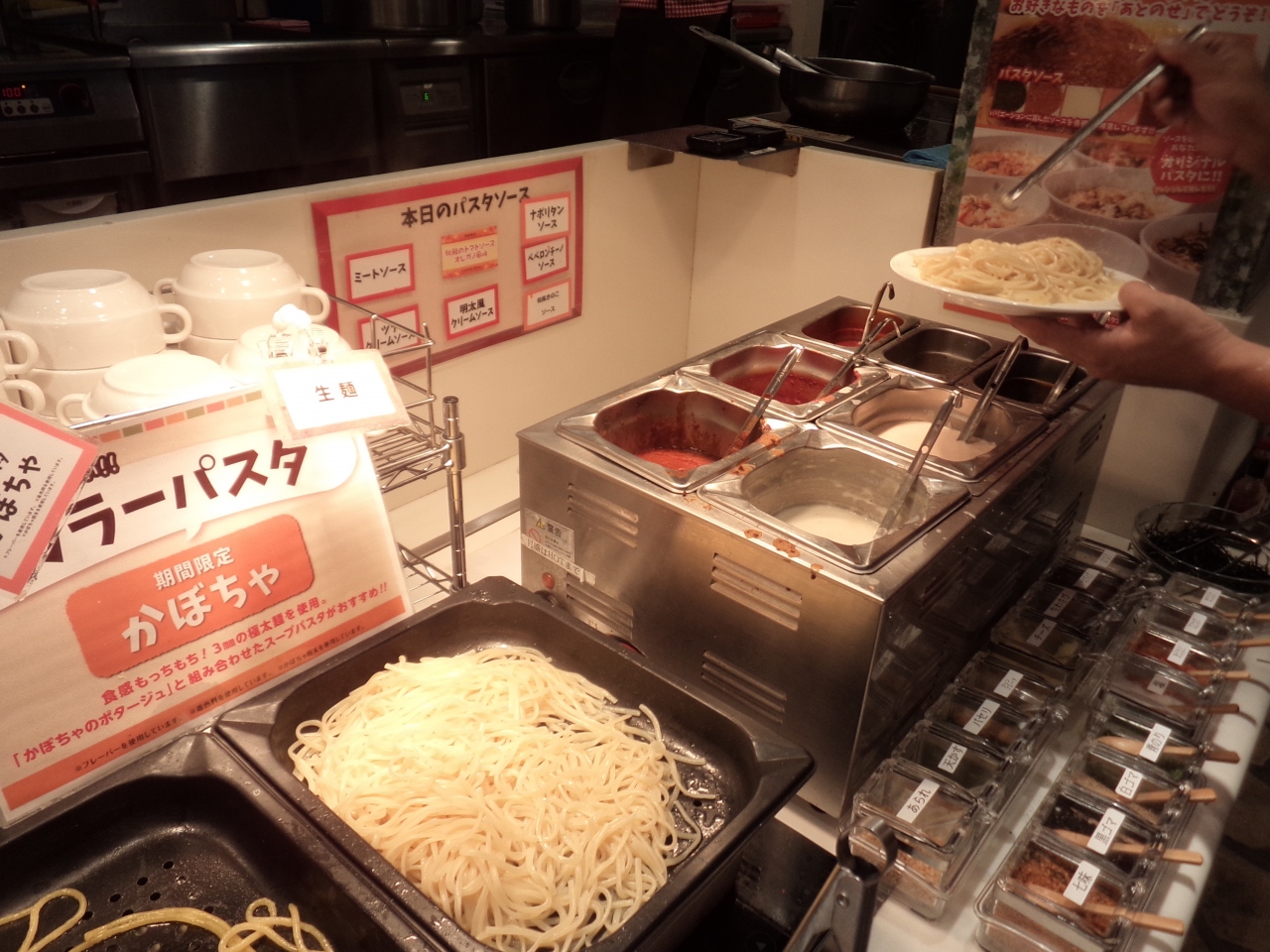 スイーツはもちろん、パスタやサラダも食べ放題です。