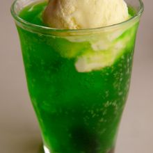 メロンソーダに、バニラアイスを1スクープ分添えたもの。