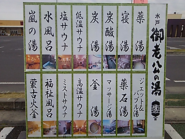 お風呂は薬湯、ジェット、寝湯、ジャグジ−、炭酸湯、鉱石湯、サウナも普通のサウナ以外に塩サウナがある。