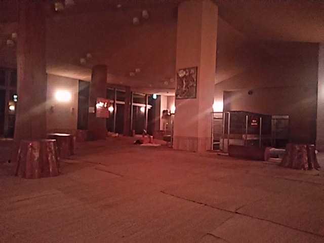 二階にレストランもあるけど、安くあげたいなら二階のゲームセンター奥に自販機のカップラーメンとかおにぎりがあるので気楽に行けますよ。