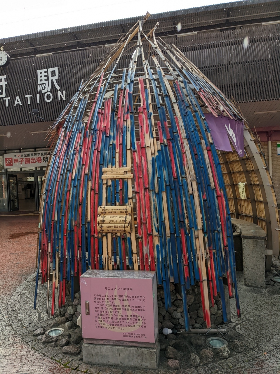 別府市観光で立ち寄りました。別府駅前手湯は、名前の通りJR別府駅前の広場にあります。すぐ傍には、有名な油屋熊八の像があるの... 続きを読むで、2つとも目立っていて分かり易いです。夜にはライトアップされて季節や時間とともに変化すると説明板に書かれてましたが昼間に立ち寄っただけで、、夜は訪問して無いので確認できてません。個人的に面白かったのは、手湯の暖簾に「混浴」の表示があったことです。 閉じる