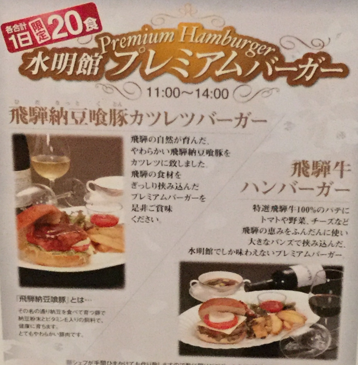 1日限定20食の飛騨牛ハンバーガー