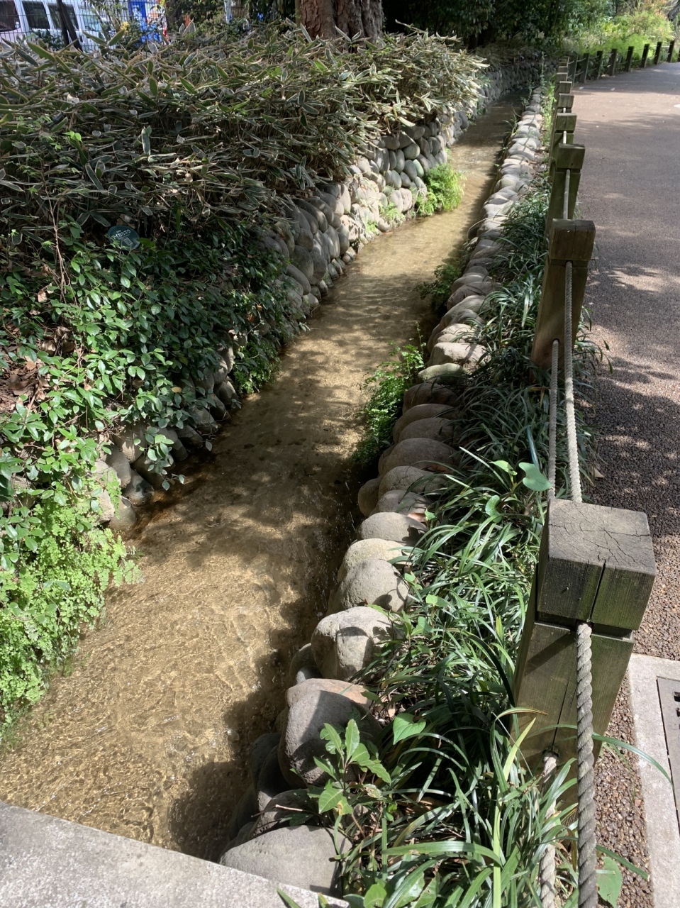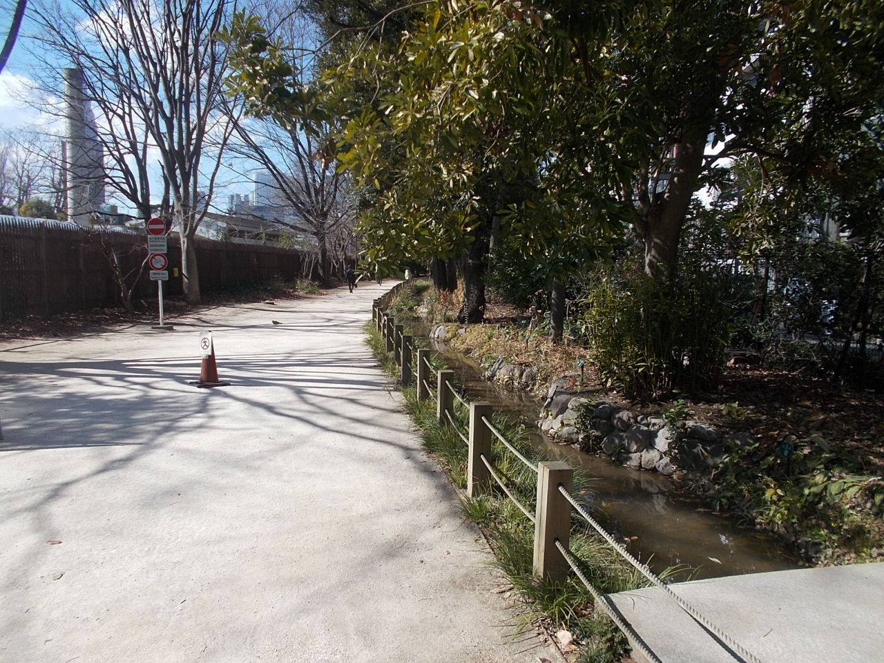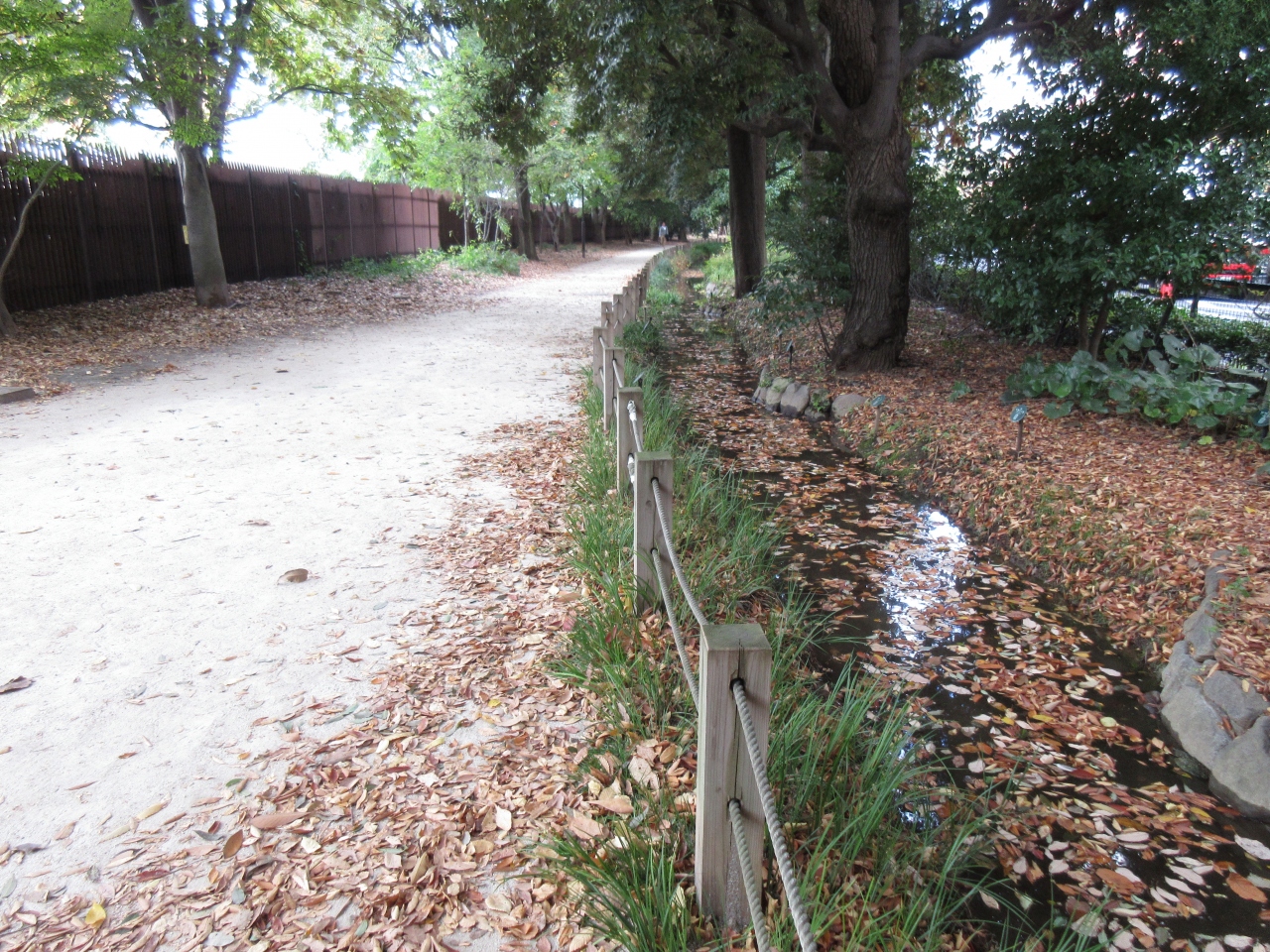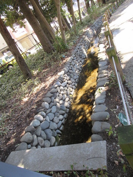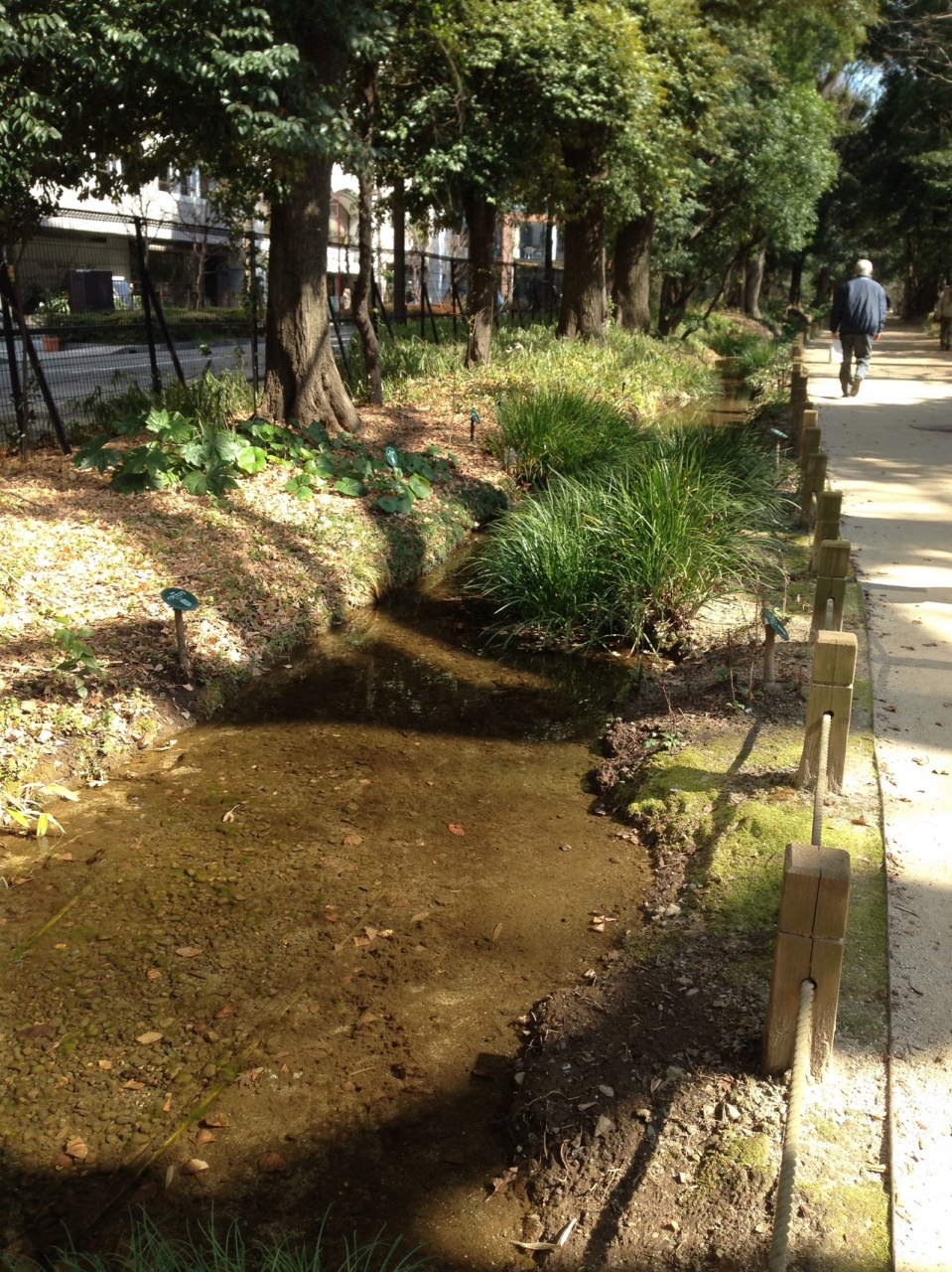 分水沿いの散歩道は その最後の地上のせせらぎを利用して整備された