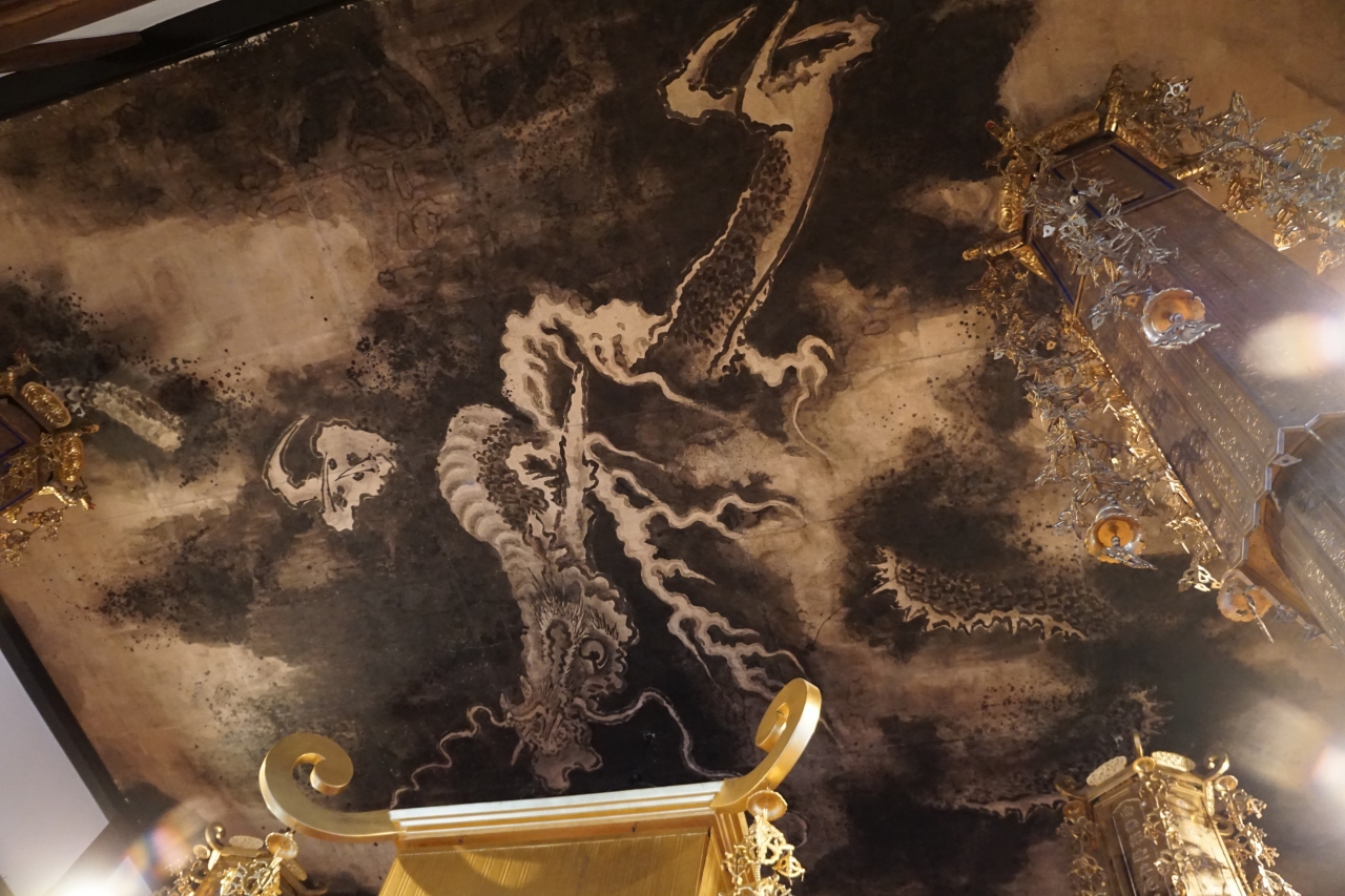 萬慶寺は、鯖江藩主、間部家の菩提寺。越前鯖江藩第7代藩主で、幕末に老中首座を務めた間部詮勝の描いた本堂の天井墨絵「風神」「... 続きを読む龍神」「雷神」が圧巻。住職に少し説明してもらいましたが、その自由で奔放な描き方はかなり独創的。自分の思うまま腕を振るって迷いがない。間部詮勝のとてつもない精神構造が垣間見られるように感じました。そして、それもそのはず。間部詮勝は、井伊直弼とタッグを組んで開港への舵を切った中心人物であり、これに頑迷に反対する朝廷に理路整然と幕府の考え方を伝えていて、その考え方は少しも間違っていない。政治家でもあり、芸術家でもある。ともに超一流であり、傑出した人物。なぜ、それほど知られていないのか。不思議な感じもしてきました。 閉じる