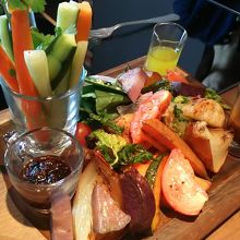 今回、何種類かの前菜とメインから選ぶ2000円のランチコースに1000円をプラスして、メインをフランス牛のステーキにしました。