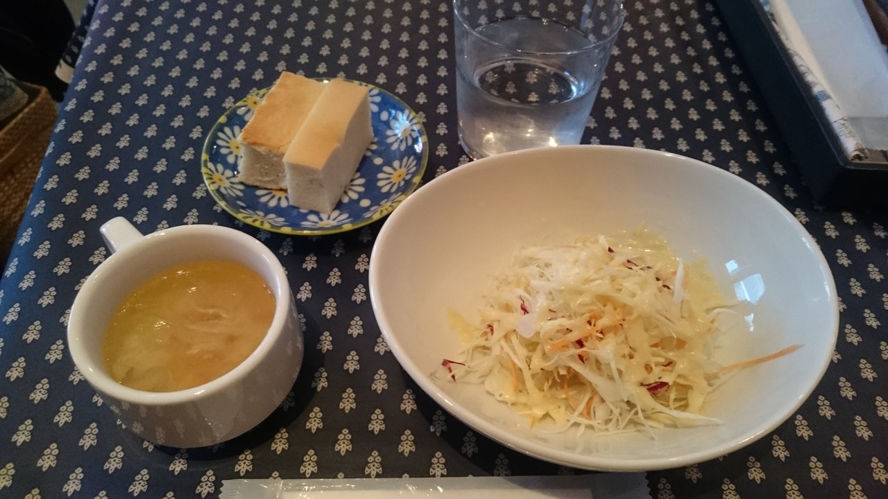 ランチセットは日替わりで3種のメインにスープ、フォカッチャ、サラダがついています。