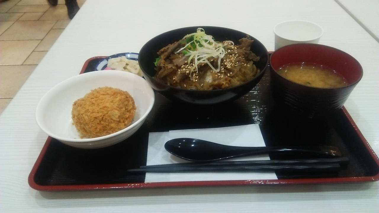 ショッピングセンターのフードコートでステーキ丼を食べた