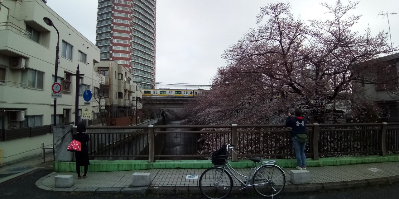 東中野駅付近で、神田川と交差しているので、満開のソメイヨシノを背景に眺められます。