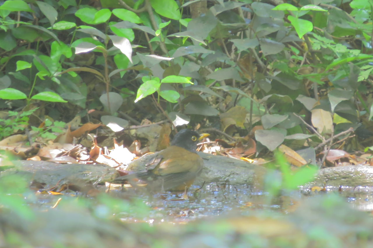 アカコッコ館の中庭には、野鳥を呼ぶ為の池(水溜り)があり、色々な野鳥が訪れます。