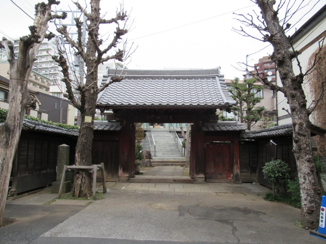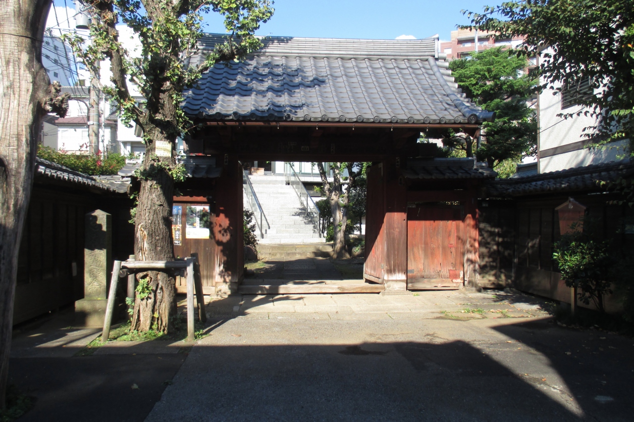豊島区高田1丁目の静かな住宅地の細い通り沿いで、大きくはないが歴史を感じる山門がある真言宗豊山派の寺院です。