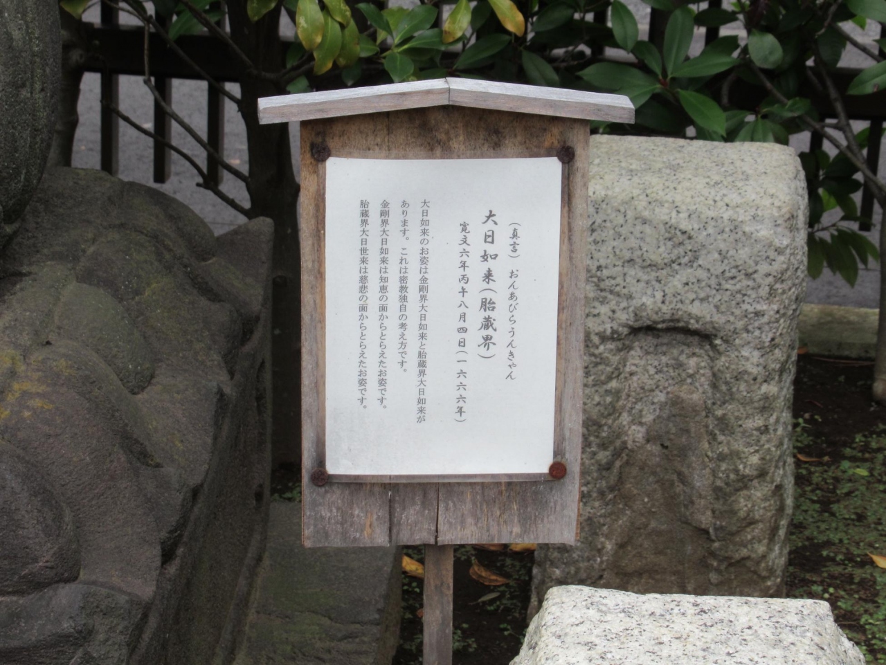 中でも目を惹かれたのは、本堂左手前にある大日如来 (胎蔵界) 像 (1666年) や山門左手前にあるともに豊島区有形文化財の青面金剛庚申塔 (1835年) と奉供養庚申天子 (1690年) です。