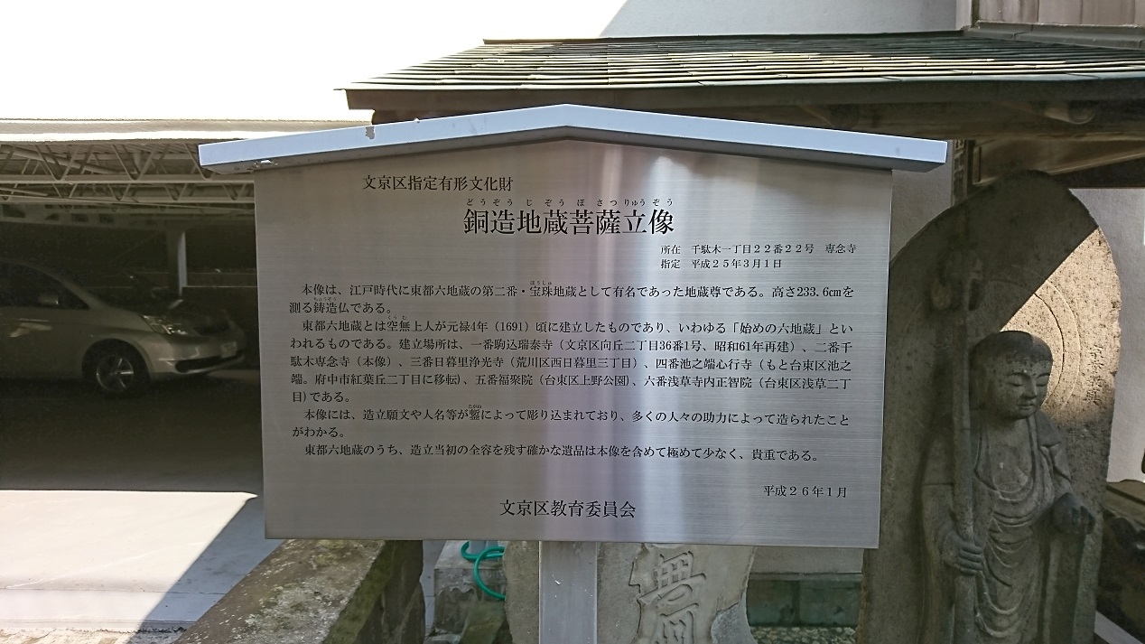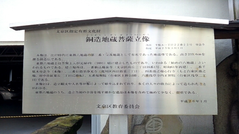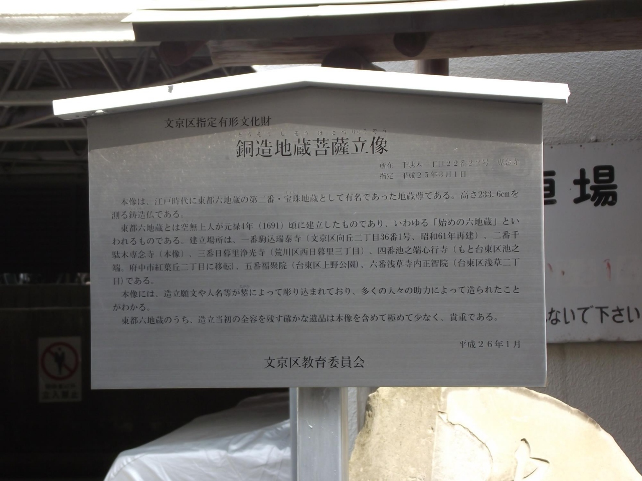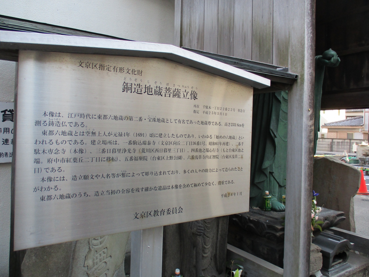東都六地蔵で当初の姿のまま残っているのはこの第二番だけらしいので、また文京区の有形文化財 (彫刻) に指定されてもいるので、場所など検討して欲しいと思います。