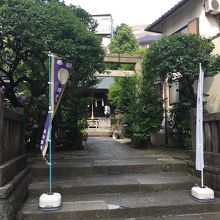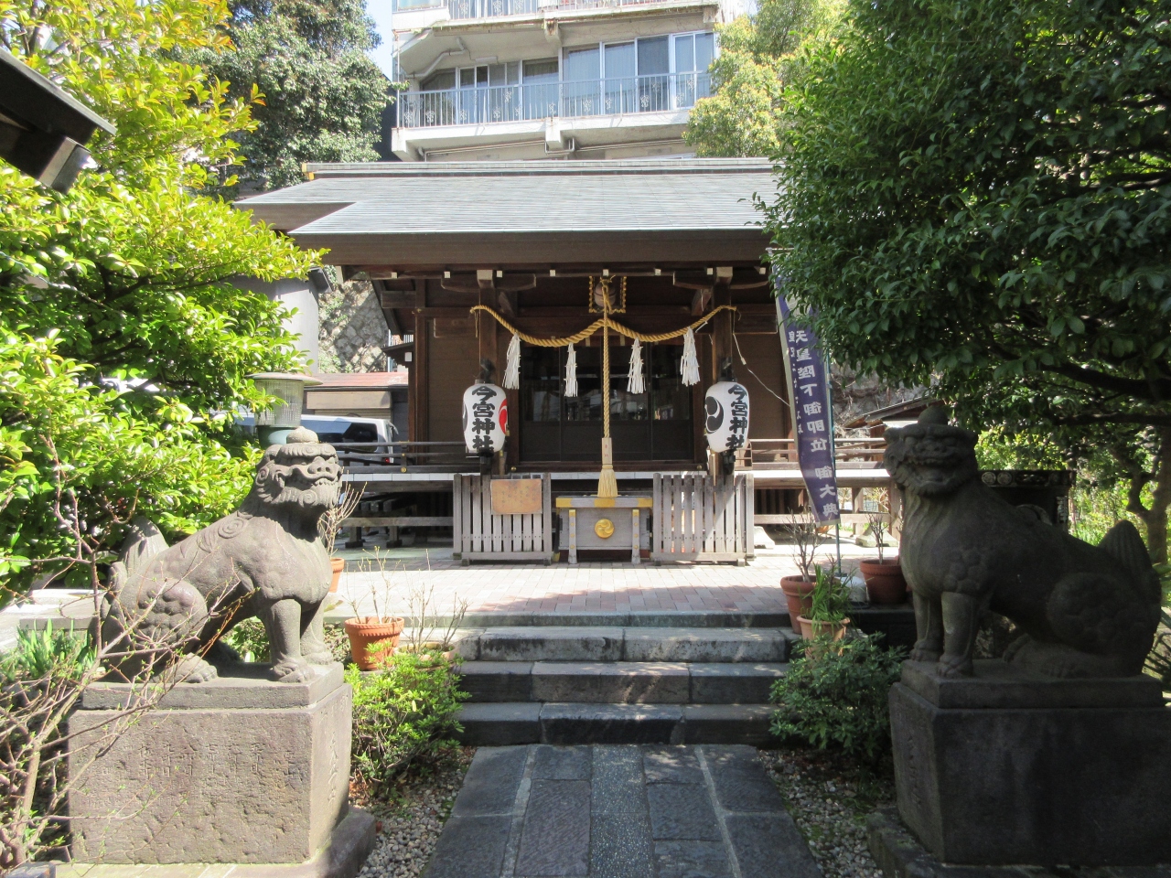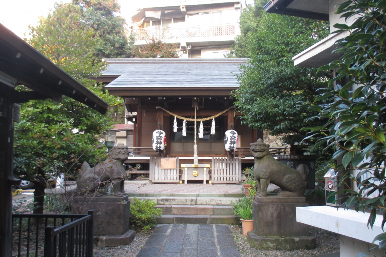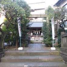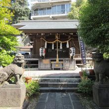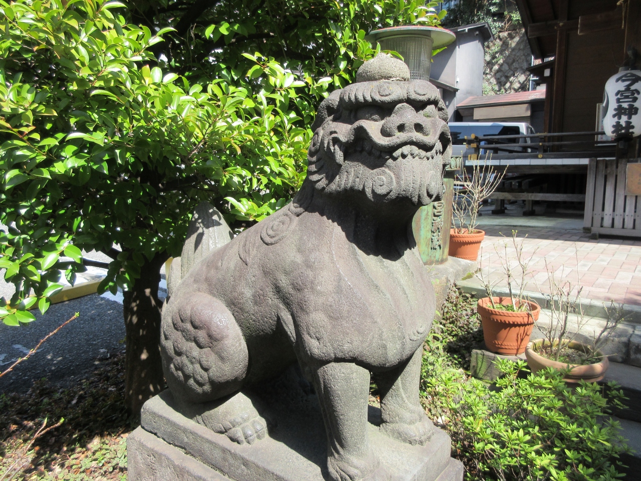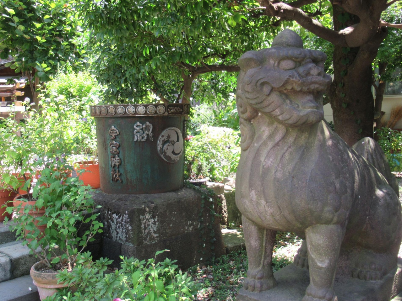 小ぢんまりした境内だが石段を上がり鳥居をくぐると、歴史を感じる立派な狛犬と天水鉢があり、更に石段を上がったところが拝殿です。