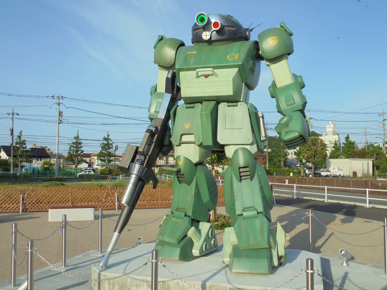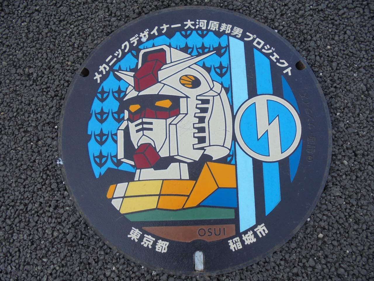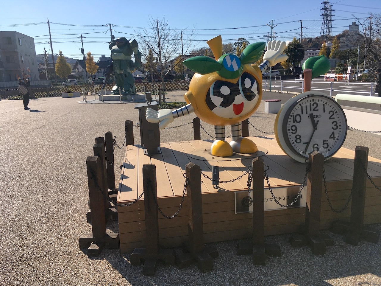 また隣接する「いなぎペアパーク」には、ガンダムのデザインマンホール、「装甲騎兵ボトムズ」の「スコープドッグ」のモニュメントもあり見どころ多し。