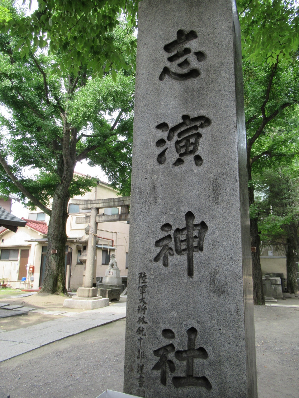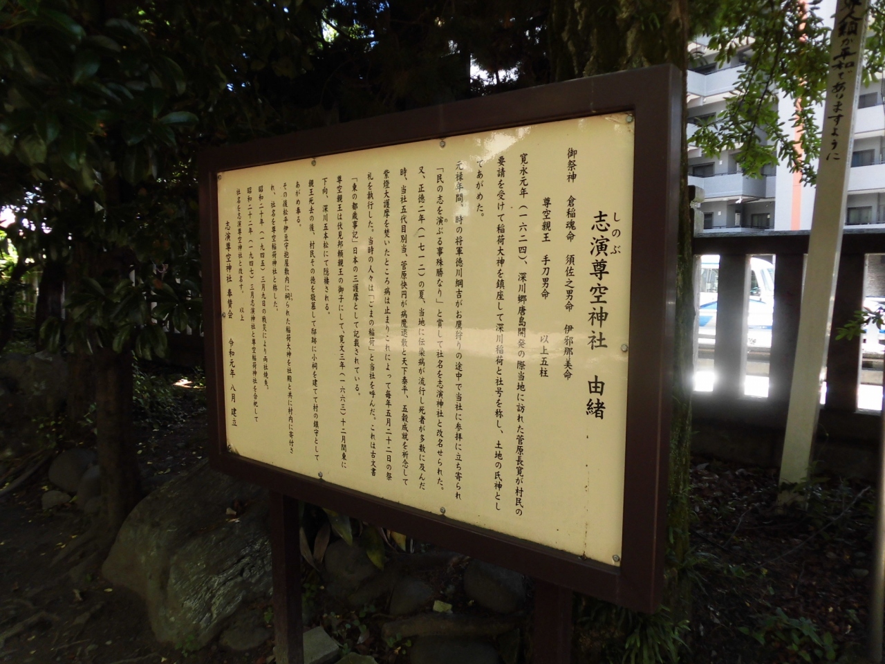 元禄年間、時の将軍徳川綱吉がお鷹狩の途中で当社に参拝に立ち寄られ「民の志を演ぶる事殊勝なり」と称して志演神社(しのぶじんじゃ)と改名したとのこと。