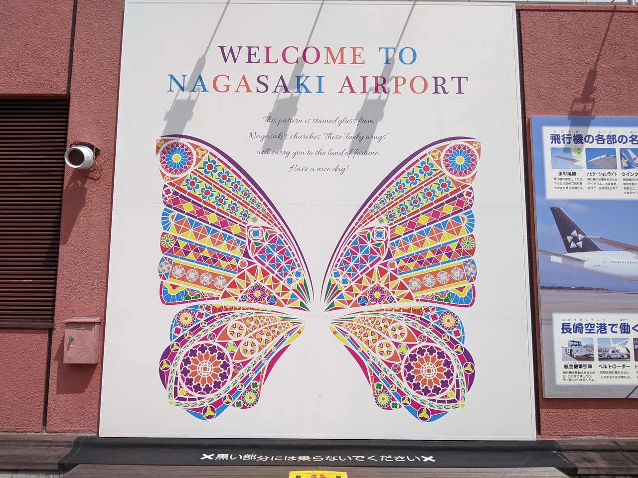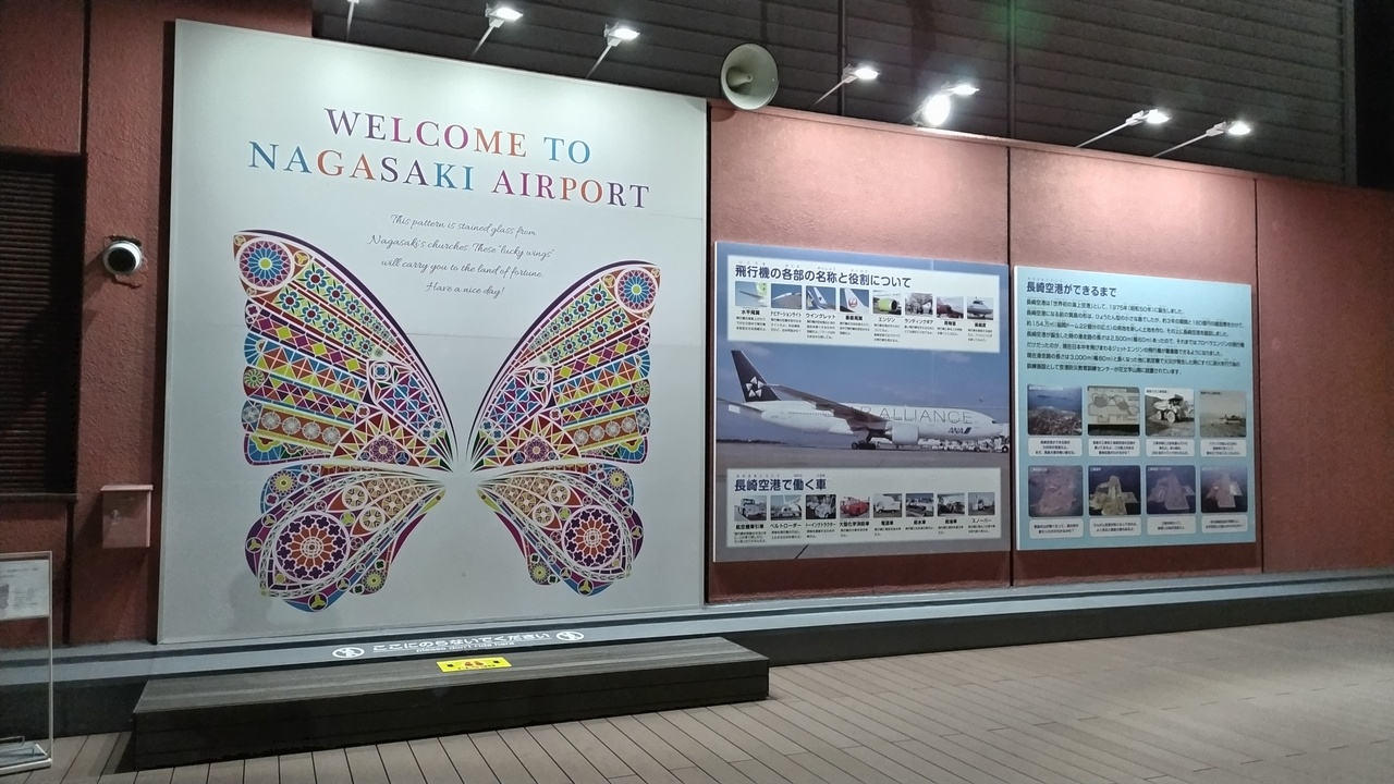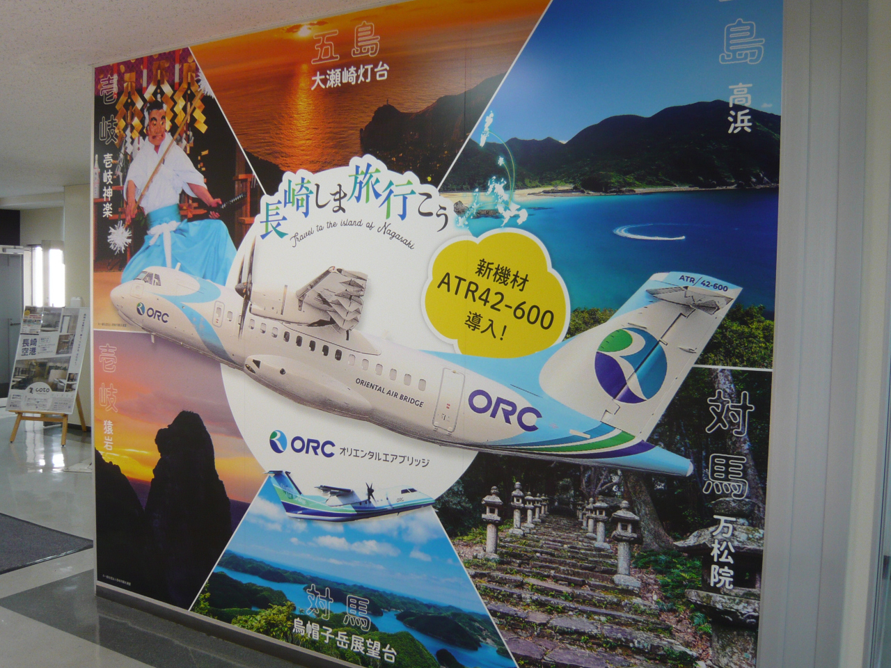 また、入った直ぐの壁面にも同様にここをホームベースにするオリエンタルエアブリッジのPR表示、新機材ATR42-600型機導入!と大々的に”長崎しま旅行こう”壱岐 五島 対馬を結ぶリージョナル航空会社を印象付けるには最高のインパクトです。