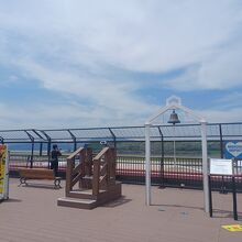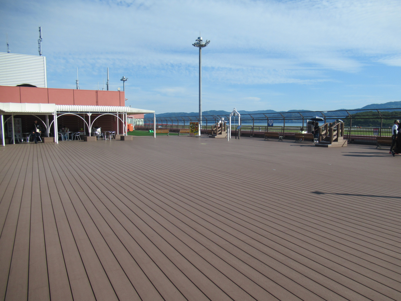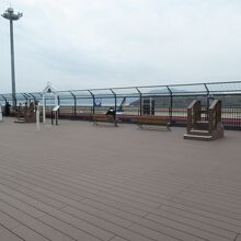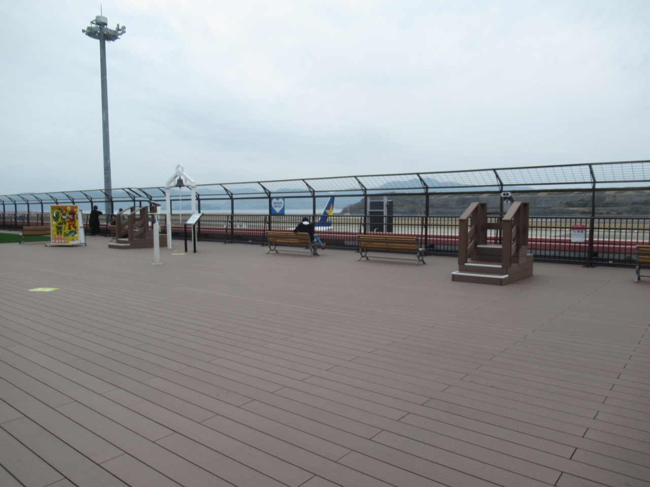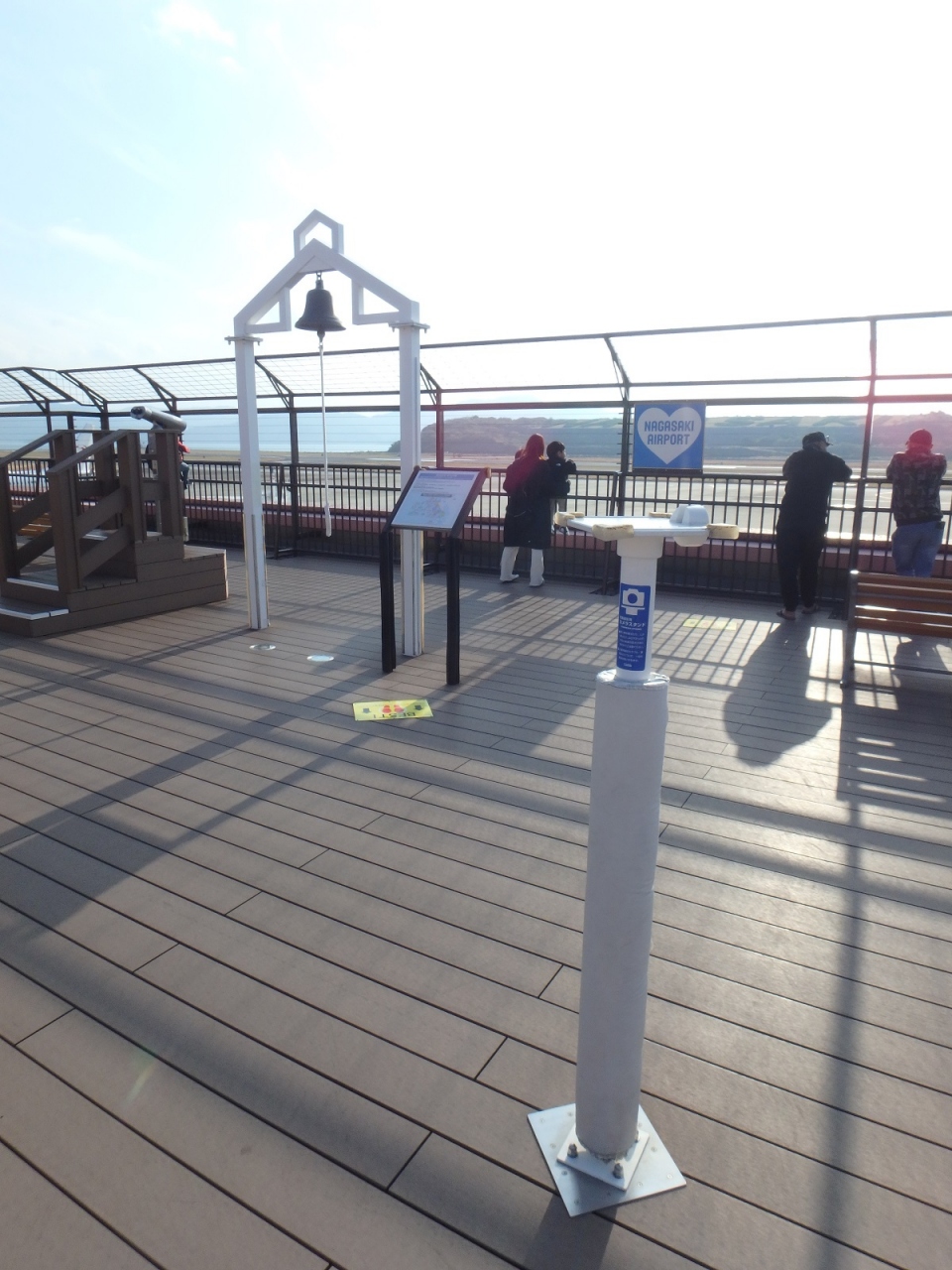展望デッキには教会のイメージを模った長崎の鐘が有り、壁面に大きな幸運の羽・つばさに誰でも鳴らすことが出来る幸せの鐘、ちびっ子達に人気の芝生スペースに屋根付きのくつろぎスペースにはテーブルと椅子があり充実の施設です。