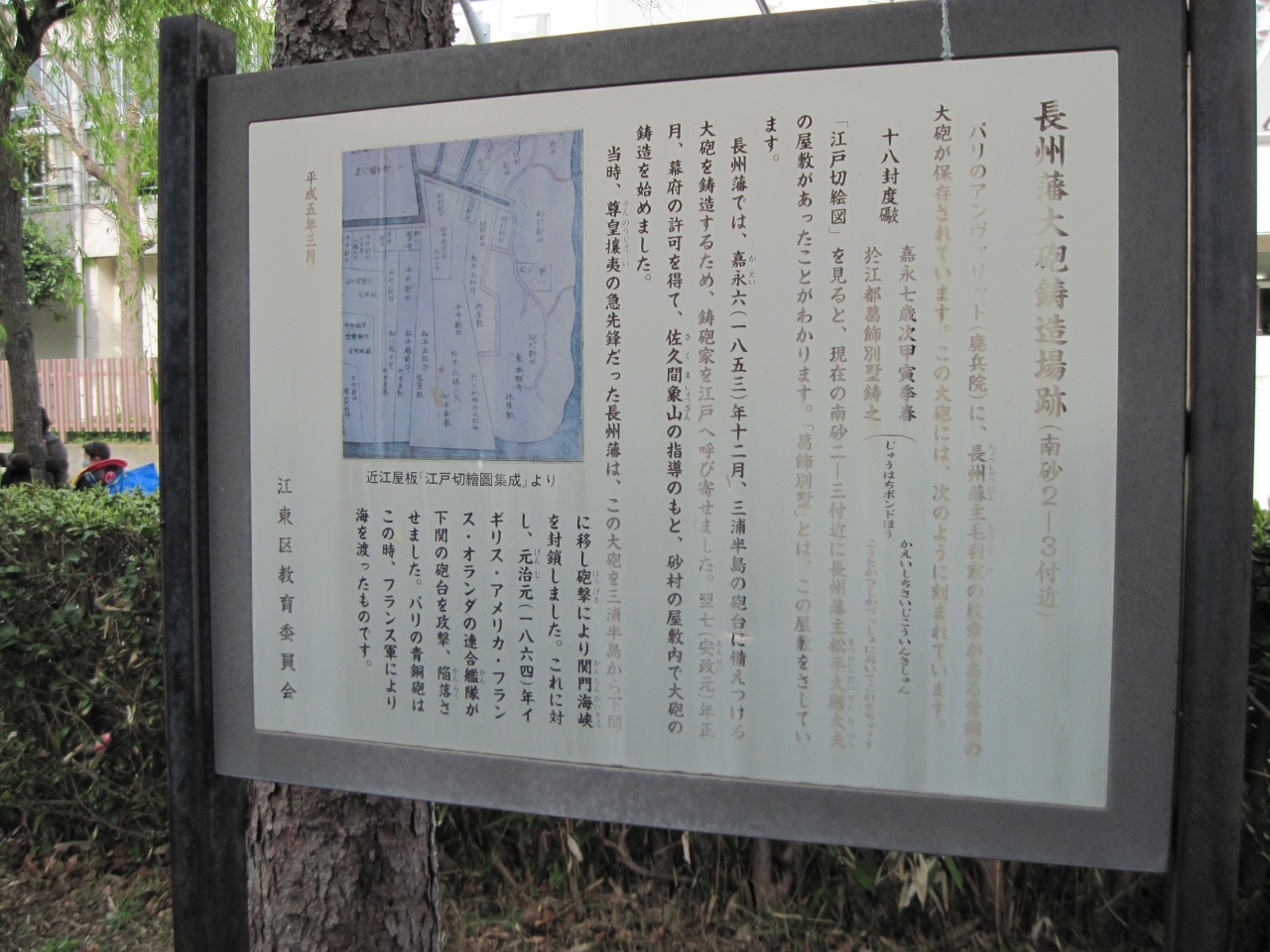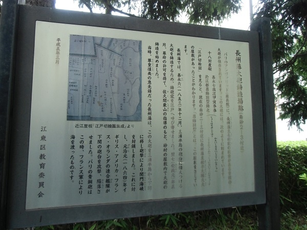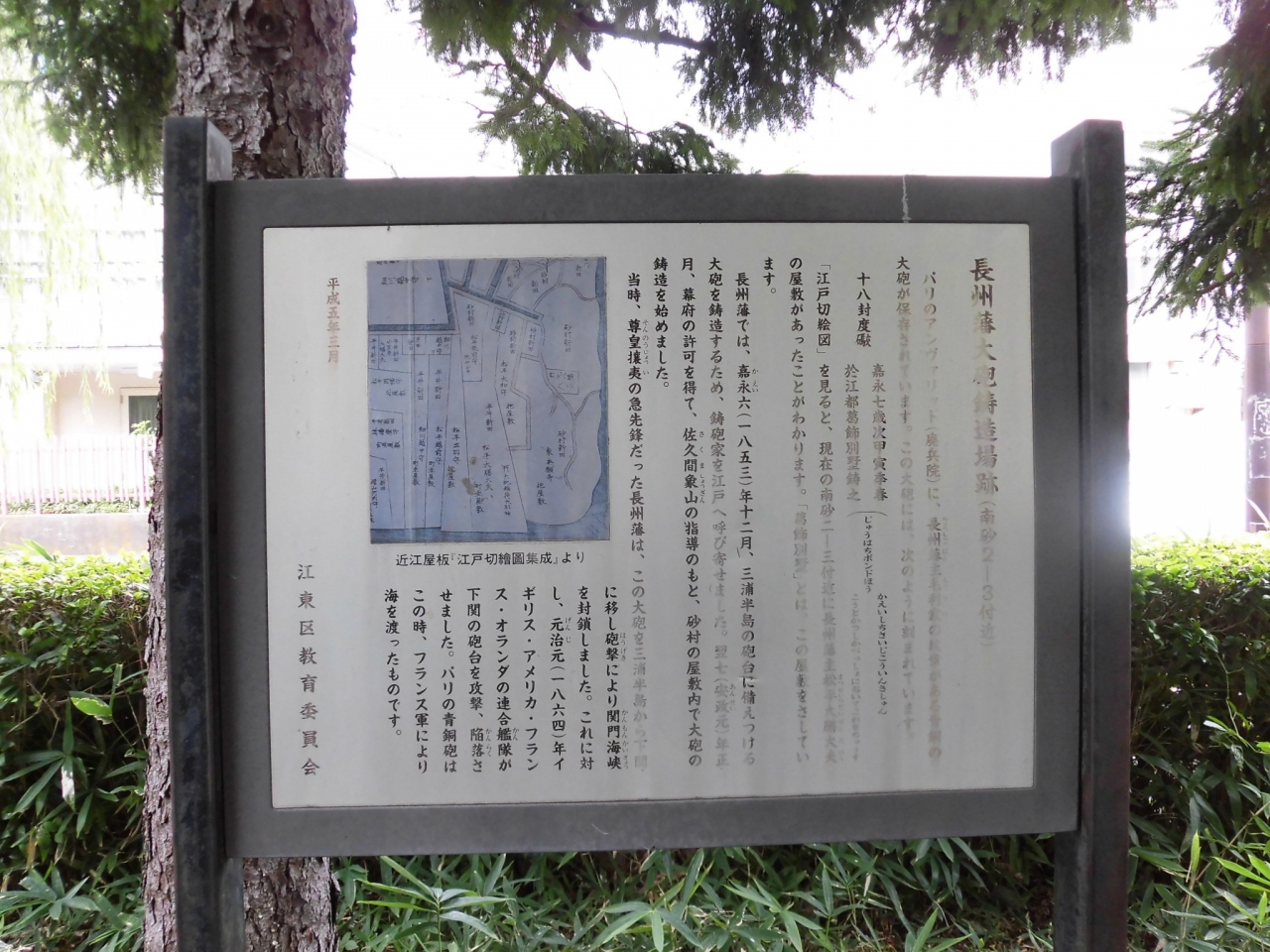 「江戸切絵図」を見ると、現在の南砂2-3付近に長州藩主松平大膳大夫の屋敷があったことがわかります。