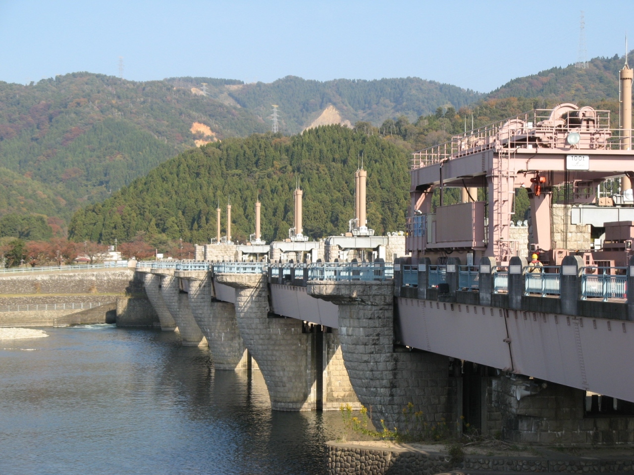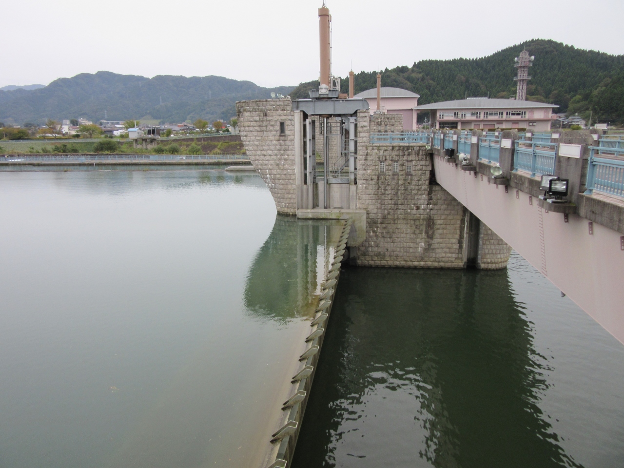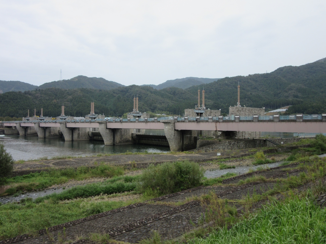 此処には江戸時代から農業用水用に石積みの堰が在ったそうですが、戦後に... 続きを読む大掛かりな農業用水の頭首工が造られました、その後水需要の増加と老朽化を受けて多目的ダムとして再開発を行い「鳴鹿大堰」となりました。