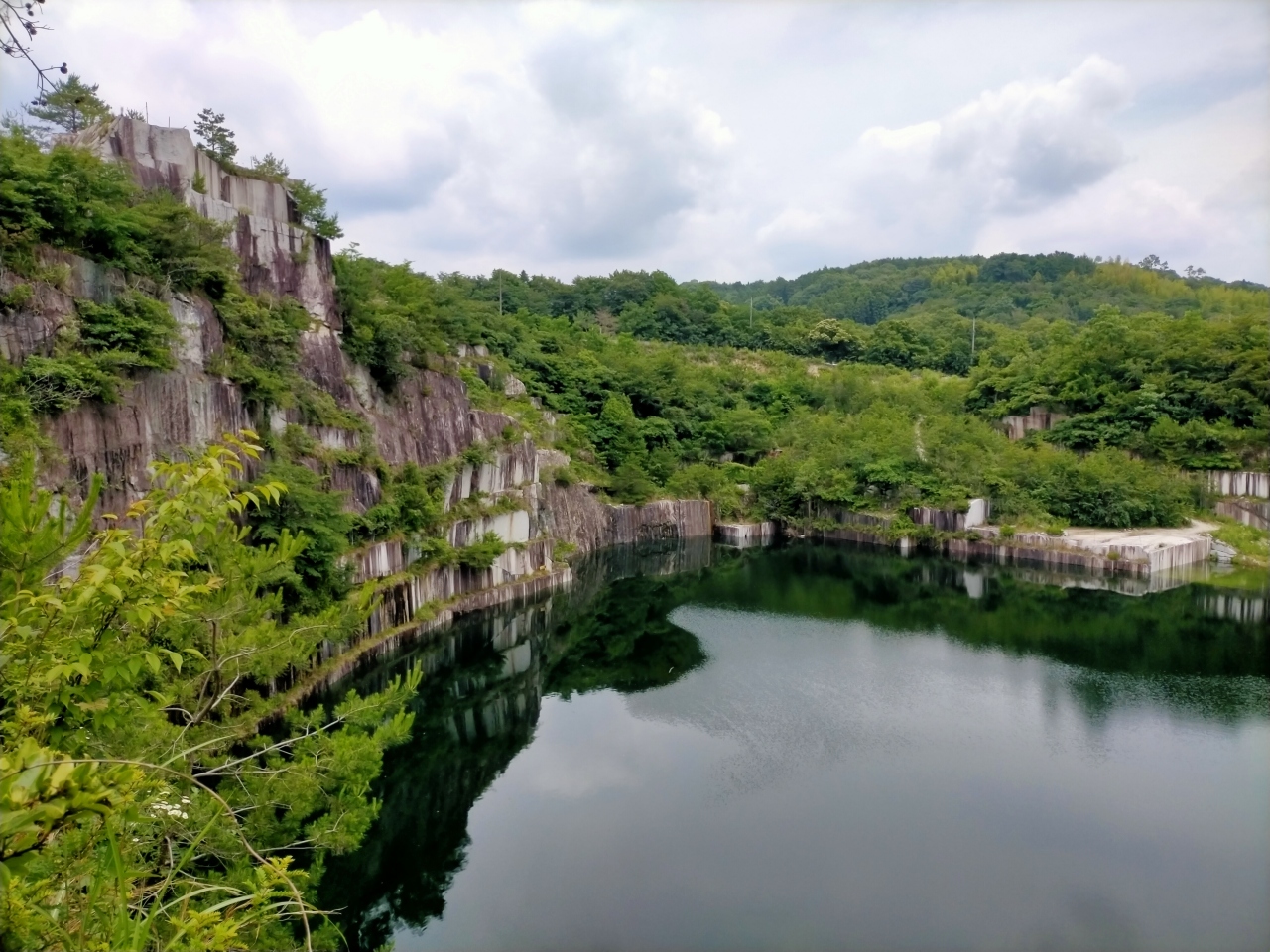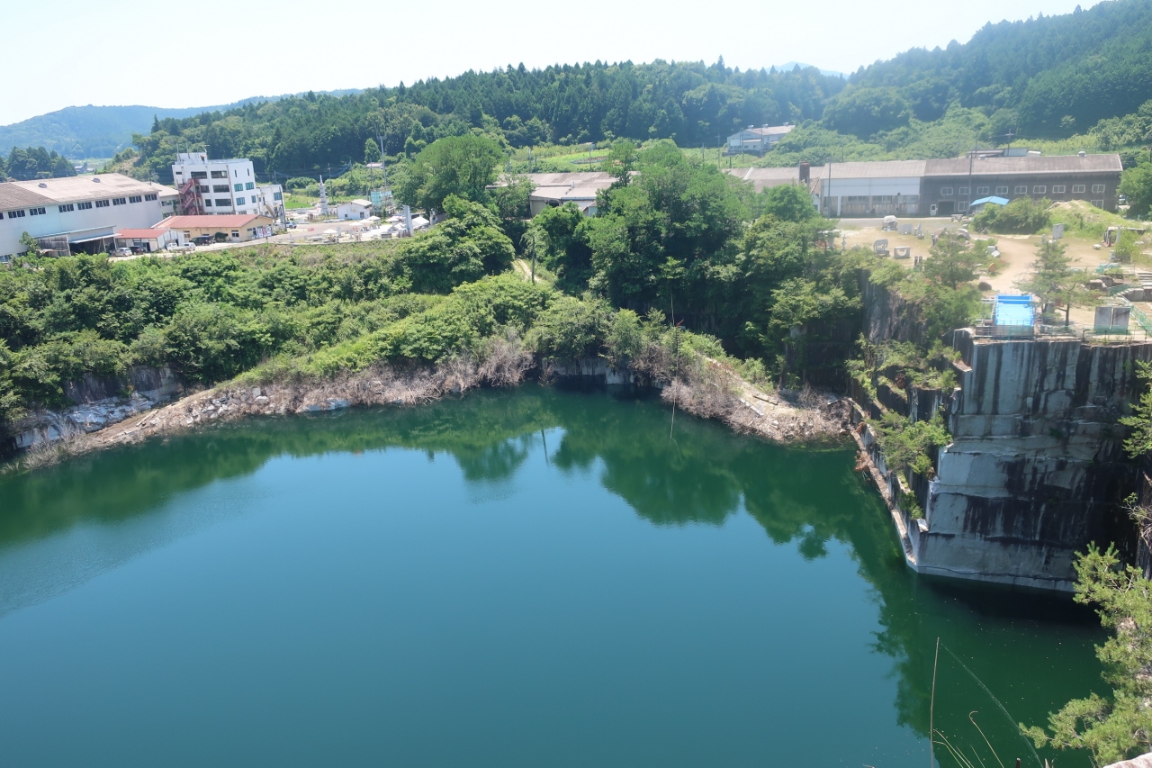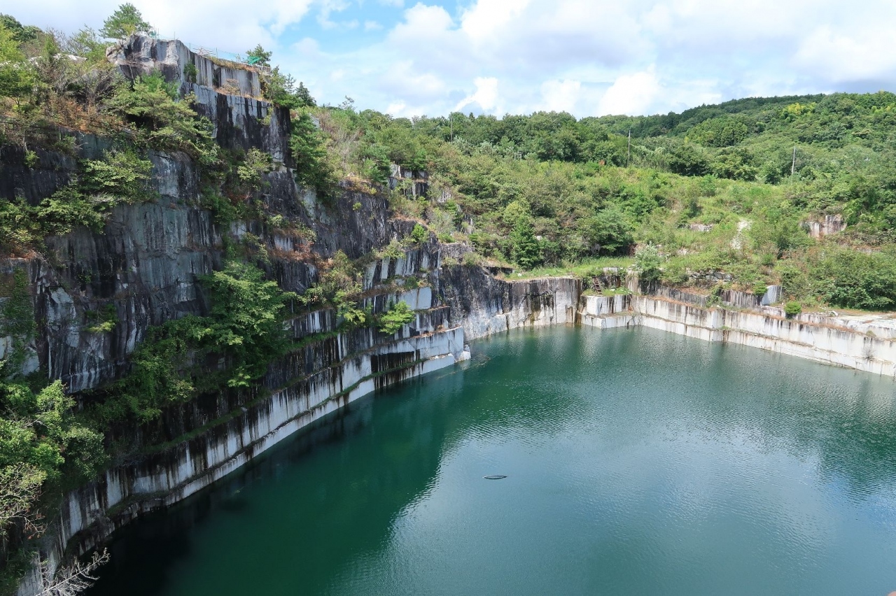 現在使われていない採掘場跡の「前山採石場」は地下65メートルまで採掘した採掘場跡地の、岩の割れ目に溜まった湧き水や雨水により「地図にない湖」ができていて、まるで古代遺跡のように見える景観がSNSで話題になっている人気スポットです。