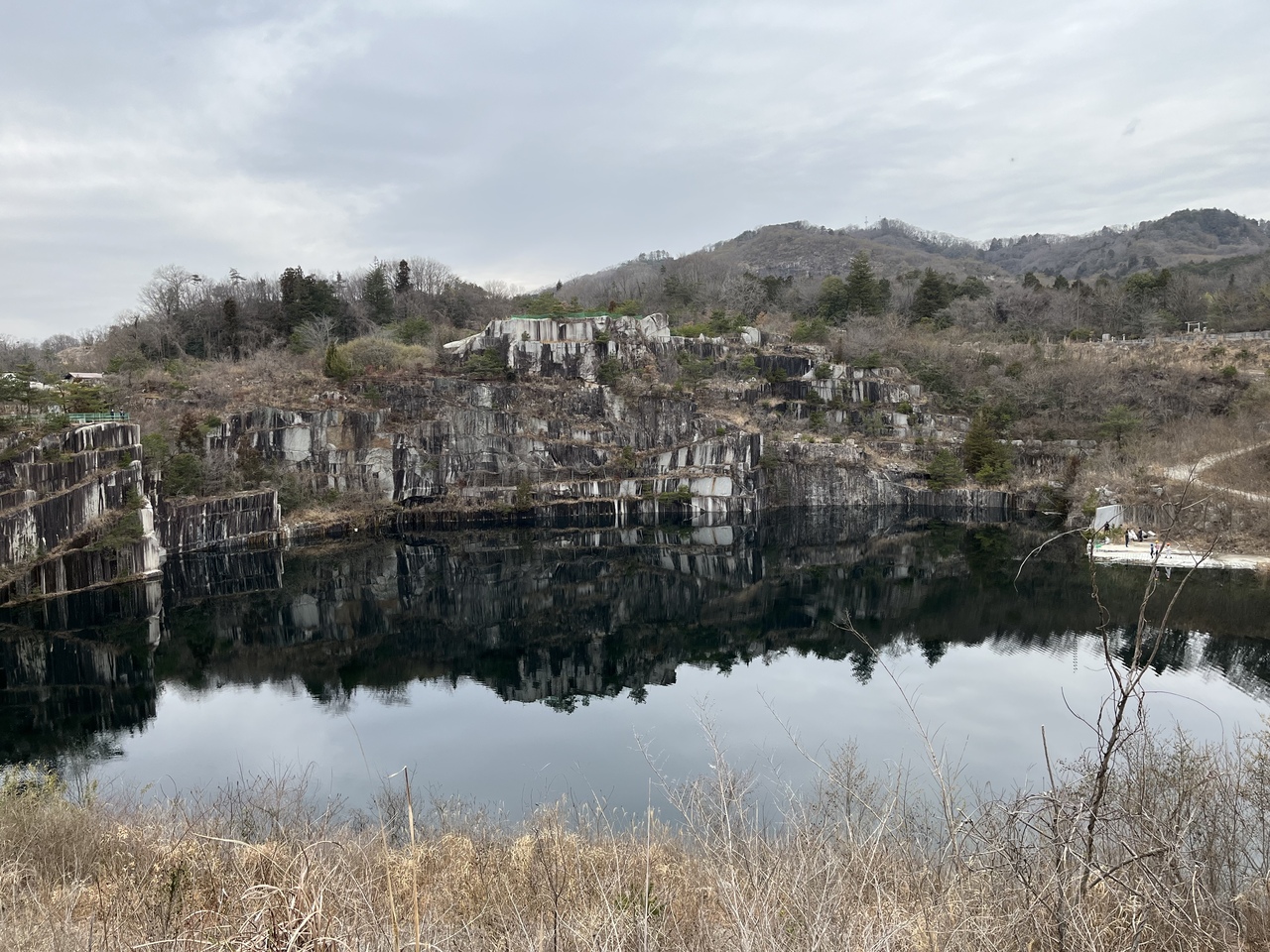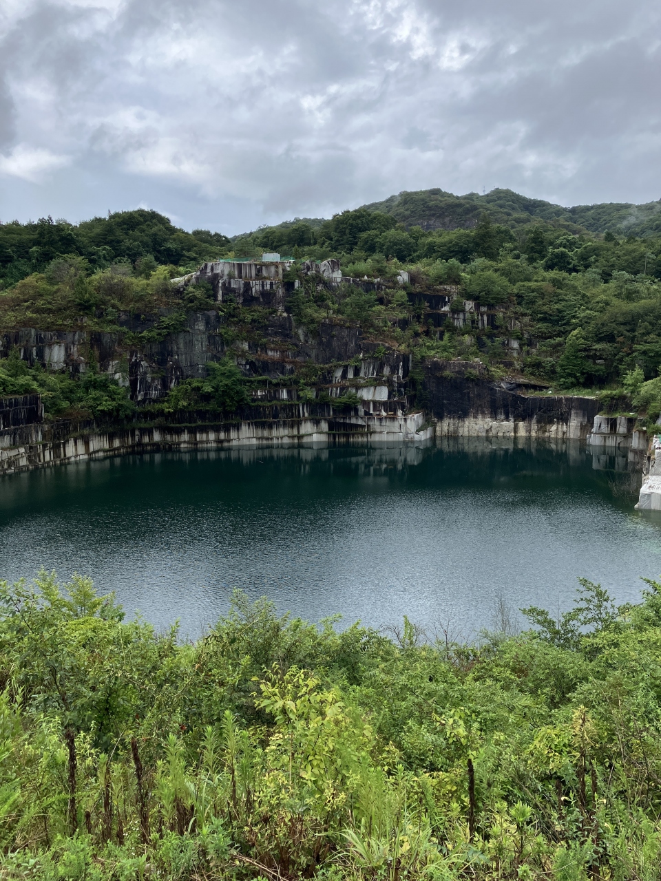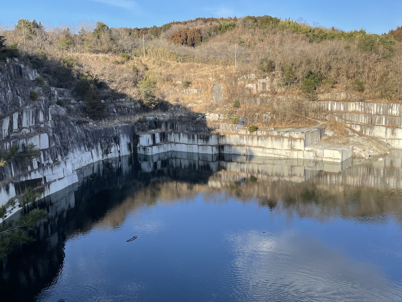 現在使われていない採掘場跡の「前山採石場」は地下65メートルまで採掘した採掘場跡地の、岩の割れ目に溜まった湧き水や雨水により「地図にない湖」ができていて、まるで古代遺跡のように見える景観がSNSで話題になっている人気スポットです。