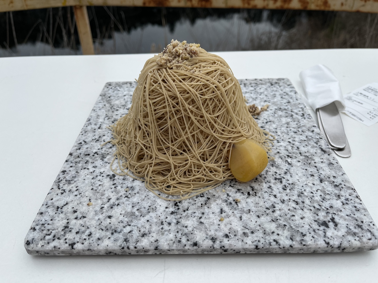 ケンミンショウなどに登場し、その場で絞って賞味期限5分のモンブランのカフェのある石切場にできた地図にない湖を見れると噂の石... 続きを読む切山脈に行きました。まず入り口がわかりづらいのでせっかくの石材があるので石の看板でも作った方がいいのでは。入場料300円を取っているのですが、入場料を払うのがカフェなのでカフェの仕事が忙しい時は紛れてお金を払わずに入れそうな雰囲気でした。工場の建物が古いのはしょうがないと思いますが、割れたガラスを放置しているのはあまり良くないと思いました。石材のオブジェのそばに使い古しかなと思われるものが置いてあったり、モンブランは1,800円でしたが美味しく、石切山脈と湖の景色はいいのですがちょっと疑問の残る観光地です。 閉じる