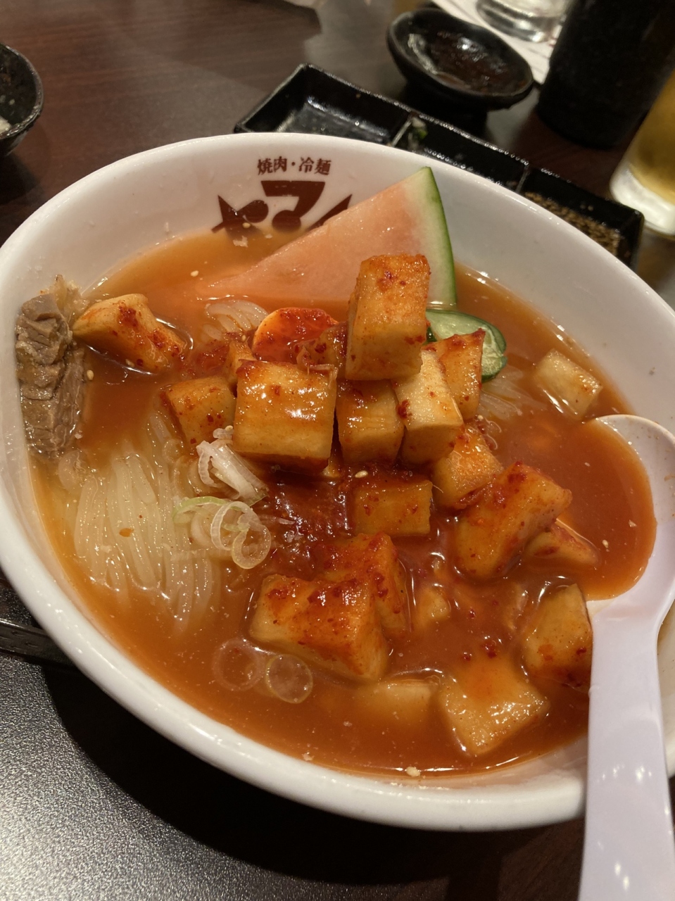 (ヤマト)毎月上旬には冷麺まつりが開催されていて、冷麺を半額の400円位でいただけます。