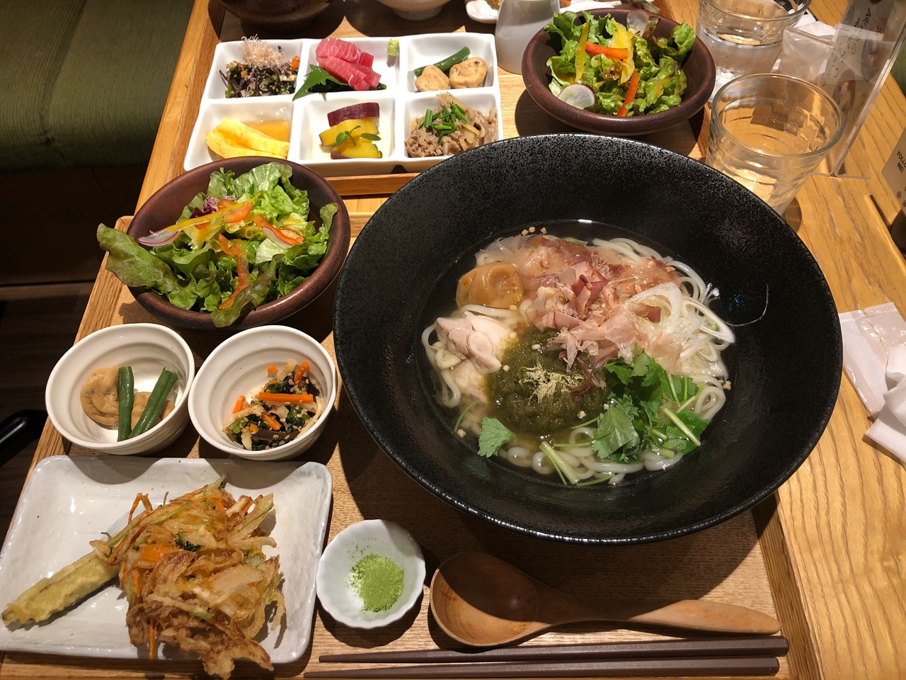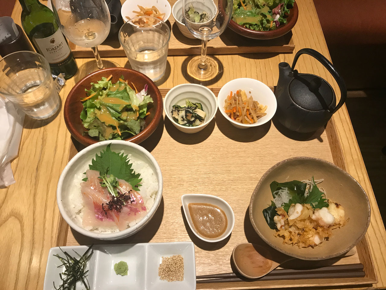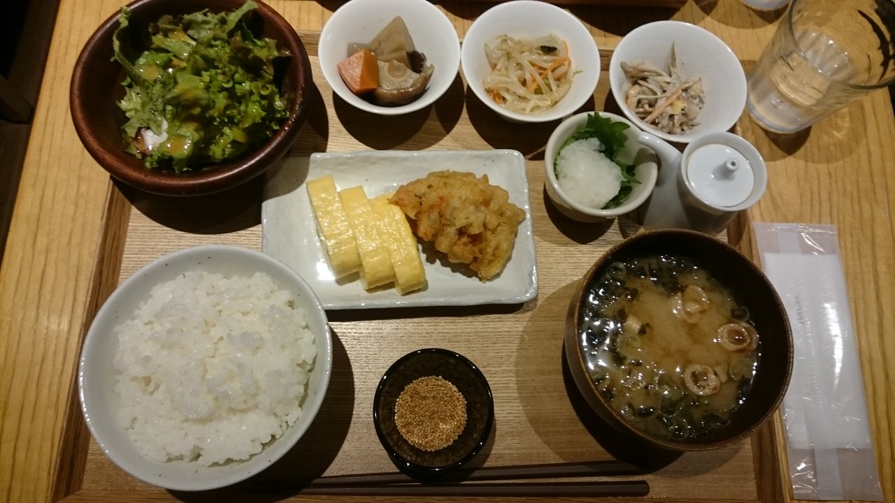 私の出汁巻きとかき揚げのセットのおばんざい御膳は色々な物が少しずつ付いていてお得な感じ。