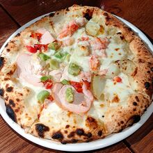 店内で焼き上げられたピザはチーズとトマトが香ばしく大変美味しいです。