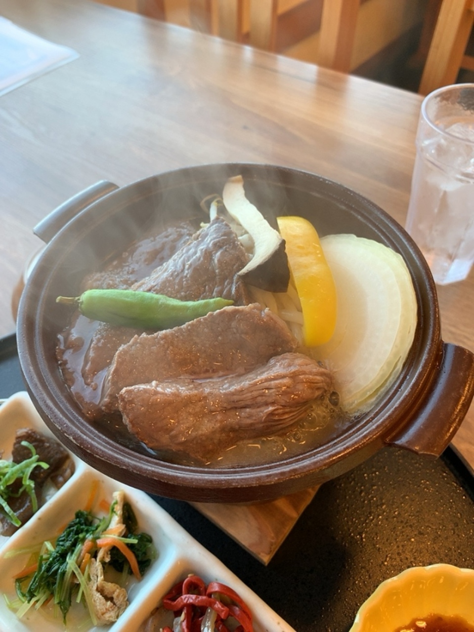 ちょっと前に霜降りのお肉ののったステーキ丼を食べたので、今回は、ヒレ肉の陶板焼きにしてみました。 どのくらいになったら食べ頃かというのも丁寧に説明してくださいました。