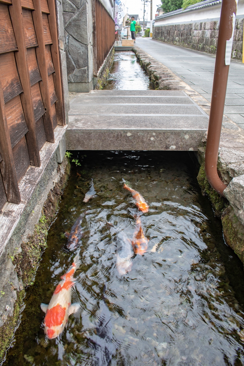 湧水の豊富な島原市の観光拠点です。錦鯉がたくさん泳いでいます。