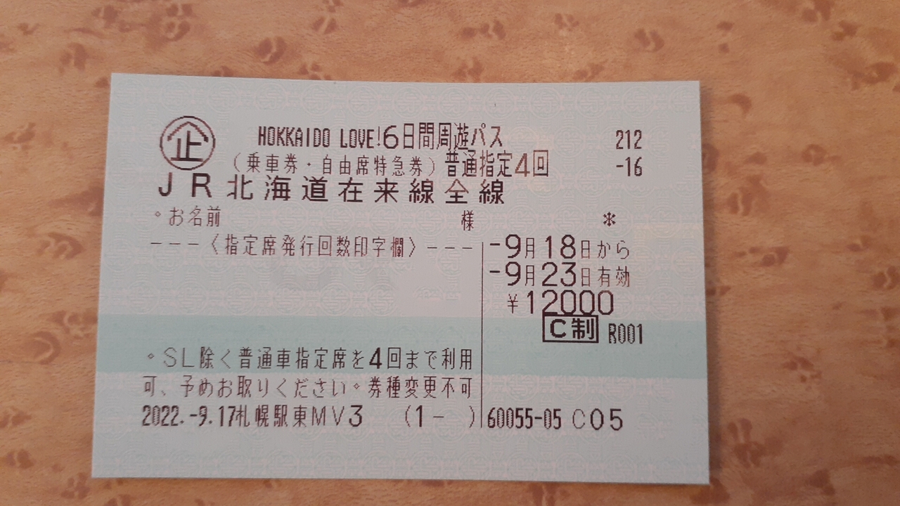 2022年9月18日から利用を開始し、札幌を拠点に9月18日は特急カムイを利用して美瑛・中富良野まで、9月19日は臨時特急ニセコと特急北斗を利用して長万部まで往復ならびに一周利用しましたが、これだけでモトが取れました。