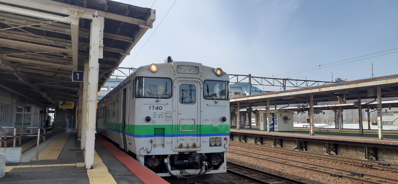 2023年5月6日現在、富良野9時07分発快速滝川行きはキハ40系という車両が使用されていました