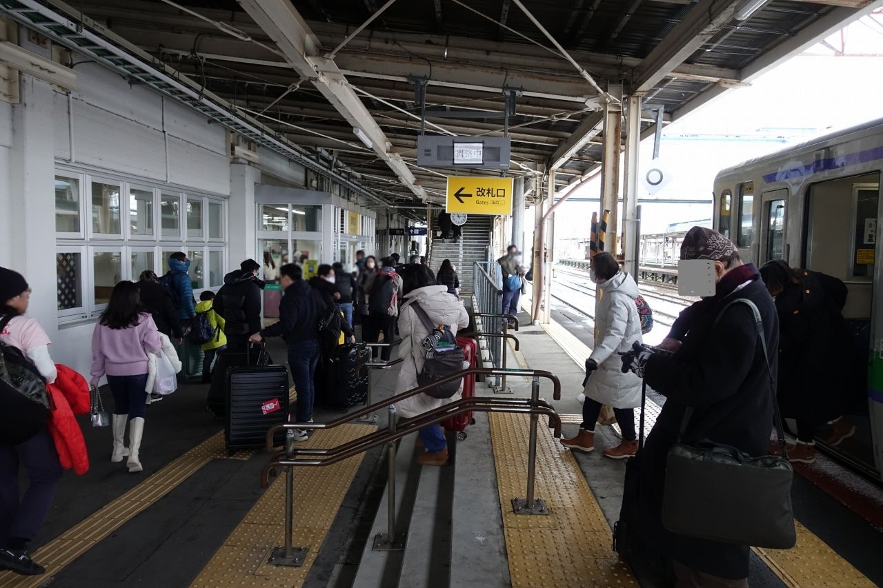 分断間近。滝川~富良野間の列車はインバウンド観光客で満員でした