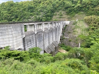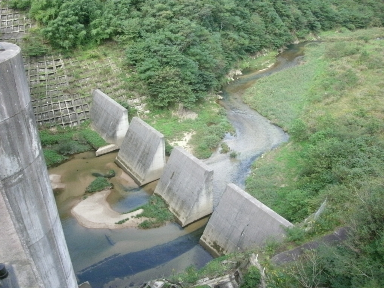 2005年に竣工された比較的新しいダムで... 続きを読む、治水のみを目的としたダムであるため、常用洪水吐きを川の底部に設置したいわゆる穴あきダムの構造を採っており、平常時は全く水を貯めないため、訪れたときも水は溜まっておらず常用洪水吐きを観ることができました。