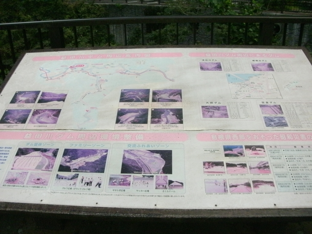 ダムサイト左岸に管理所があって、その横にベンチやダムの説明板があります。