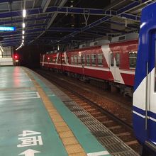 単線ながら夜間等一部の時間帯を除き12分おきで運転され、2両編成の車両が使用されています。