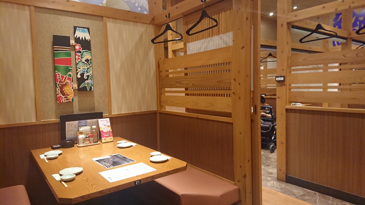 新しいので明るく、中に入ると半個室になっていて、一人でも気にせずご飯ができます。