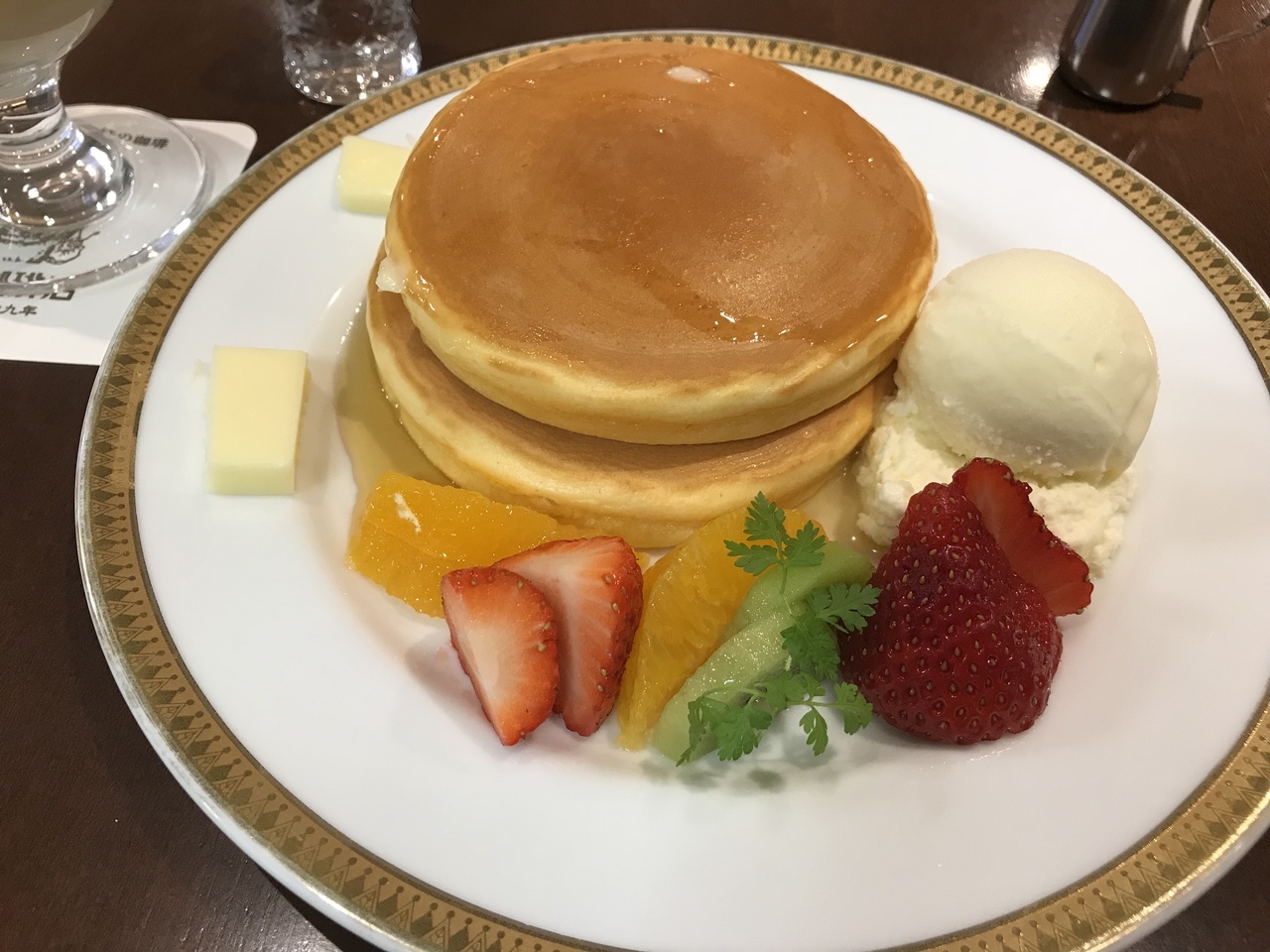 定番のホットケーキ、フルーツ添え