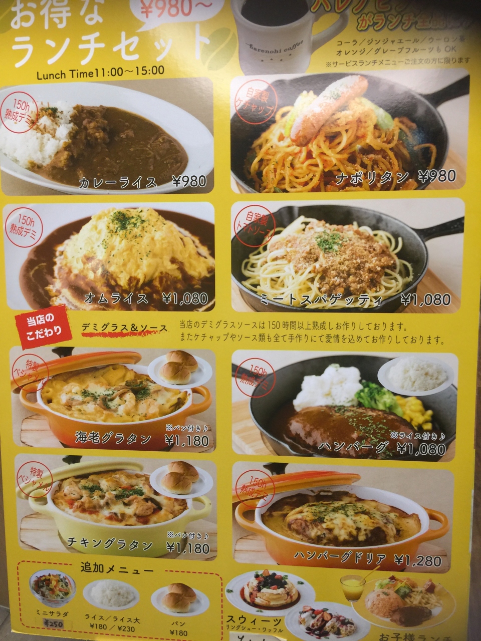 ランチメニューは女性が好むと思われる「グラタン」「オムライス」「パスタ」などが魅力的に感じますね~